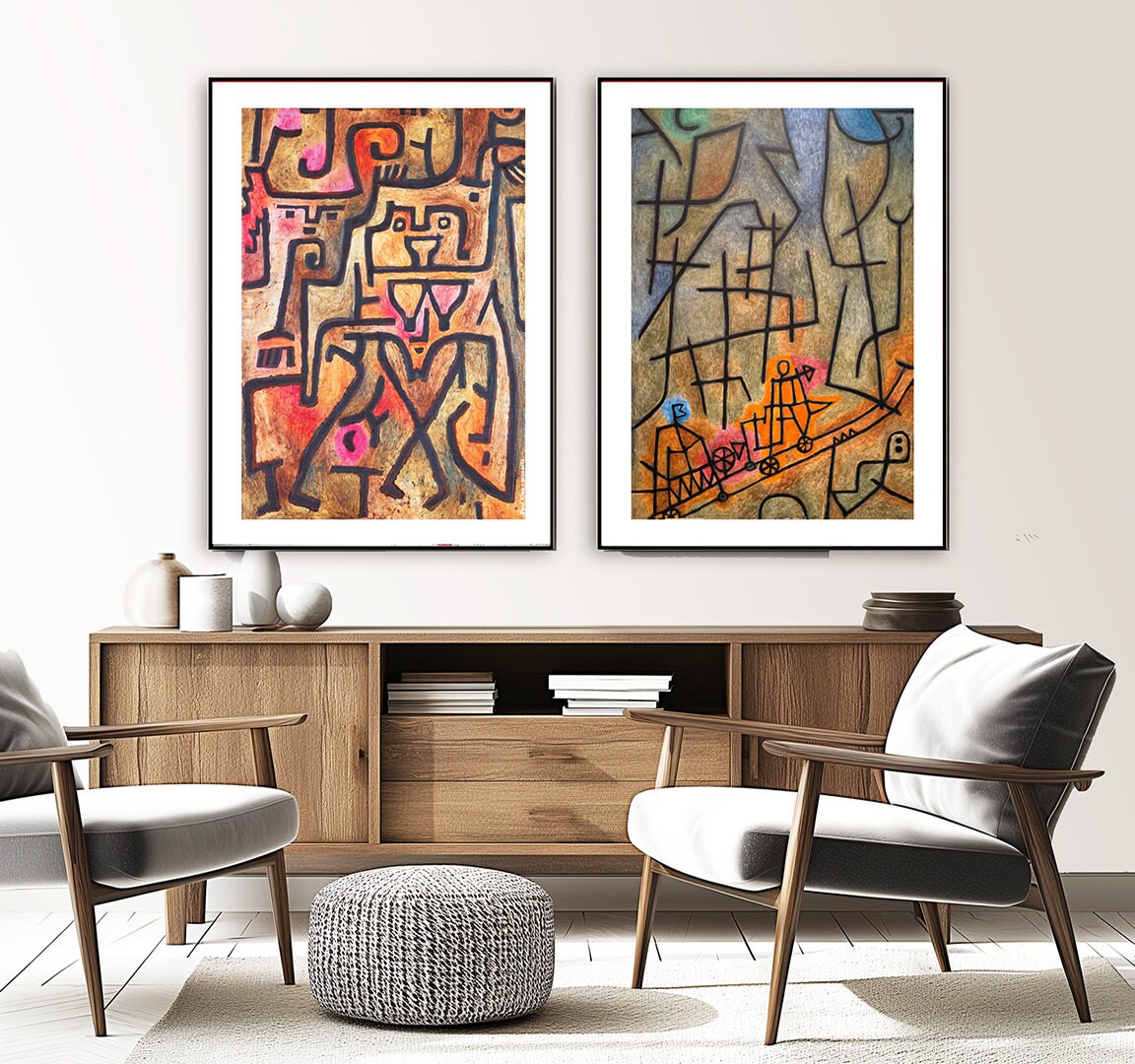 Paul Klee Prints Set: Abstract Modern Wall Art, Forest Witches & Conquest of the Mountain