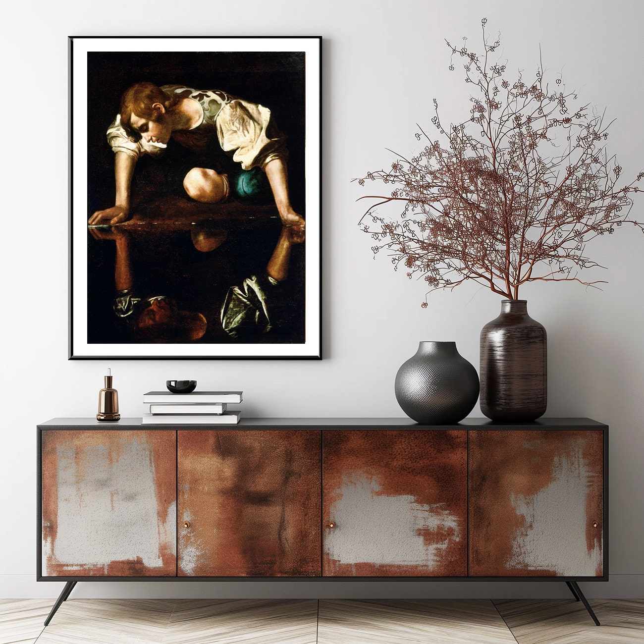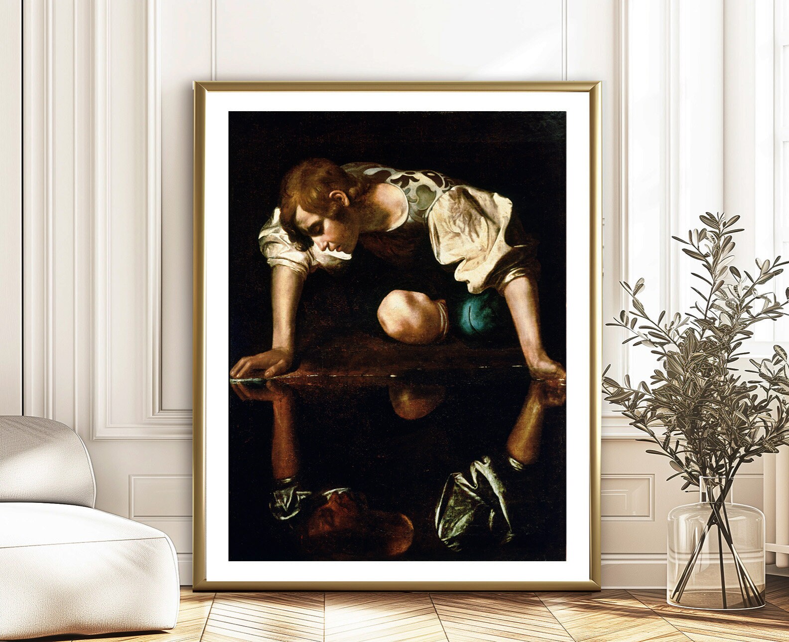 Narcissus by Michelangelo Merisi da Caravaggio Fine Art Poster, Baroque Painting, Religious Artwork, Classical Wall Art