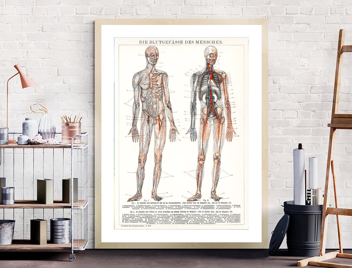Die Blutgefasse Des Menschen (1898), an Antique Lithograph of the Human Blood Vessels and Cardiovascular System Fine Art Print - Poster Paper or Canvas Print / Gift Idea / Wall Decor