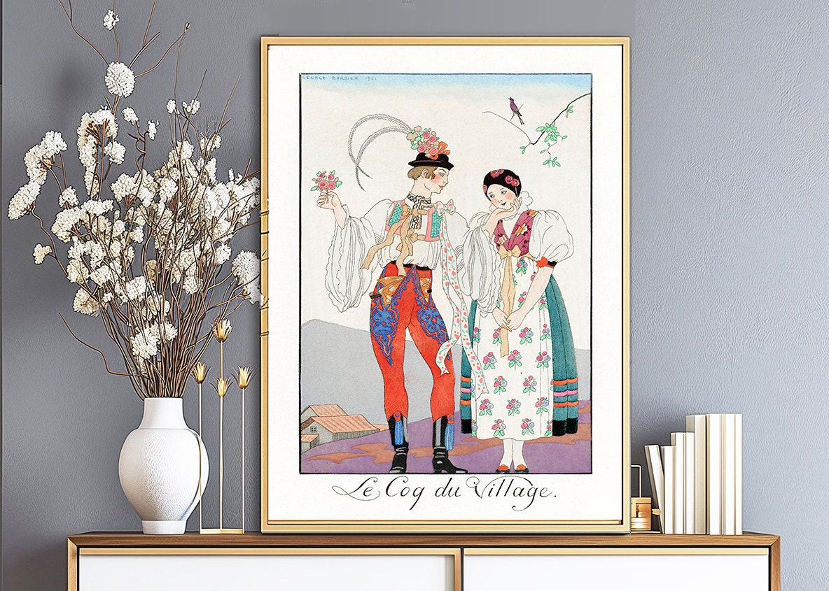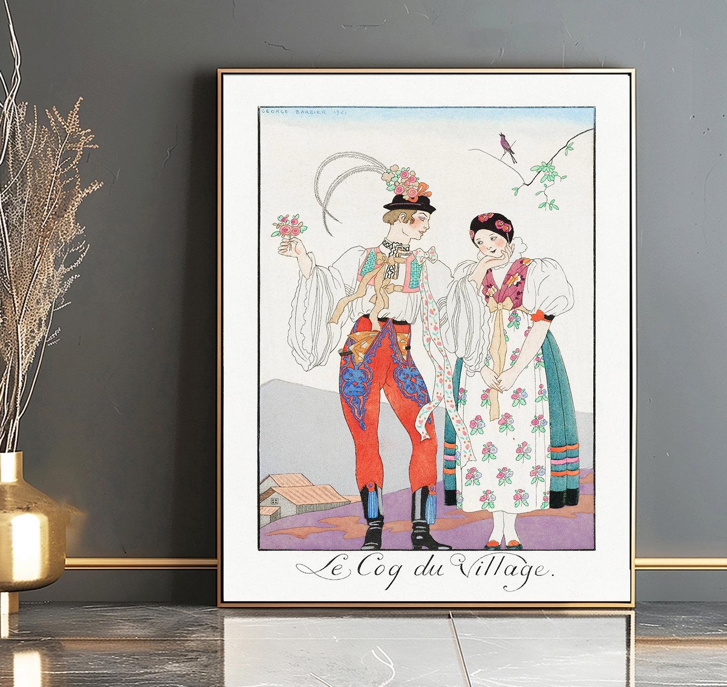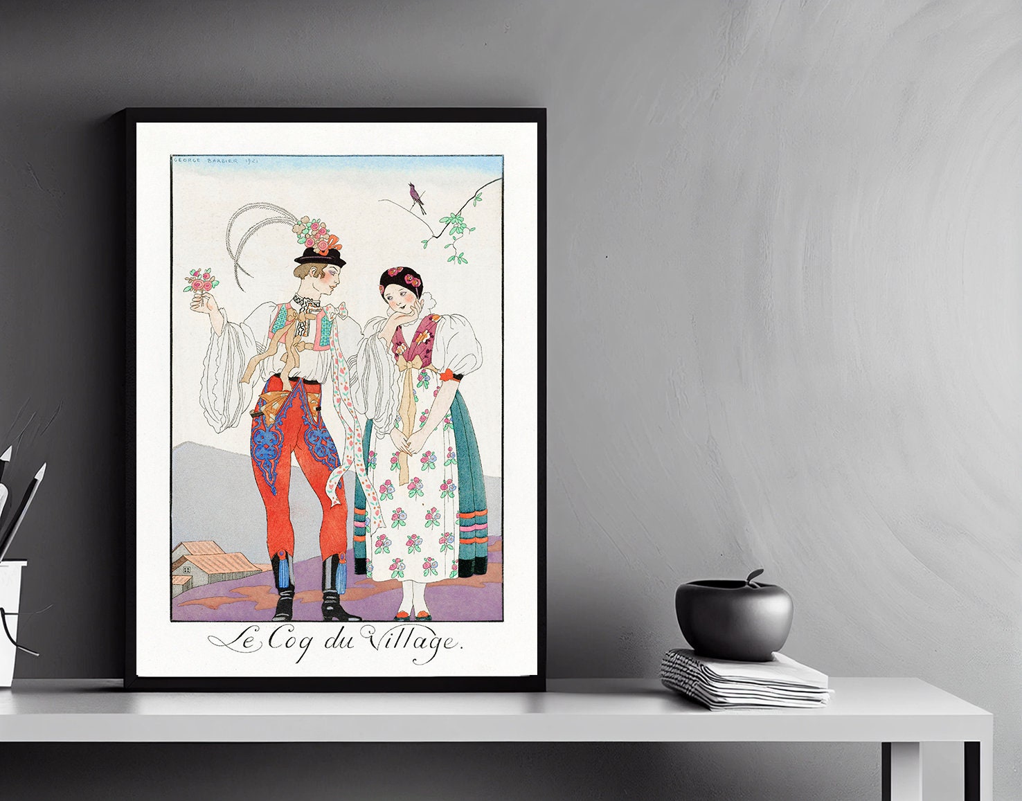 Le Coq du Village Fashion Illustration by George Barbier - Poster Paper or Canvas Print / Wall Decor