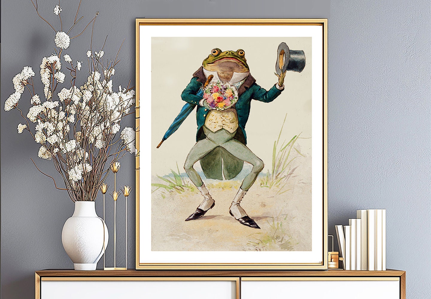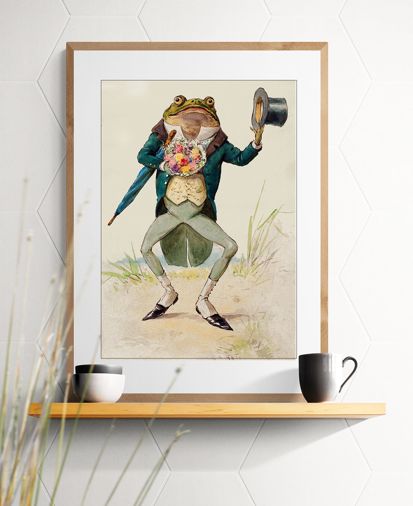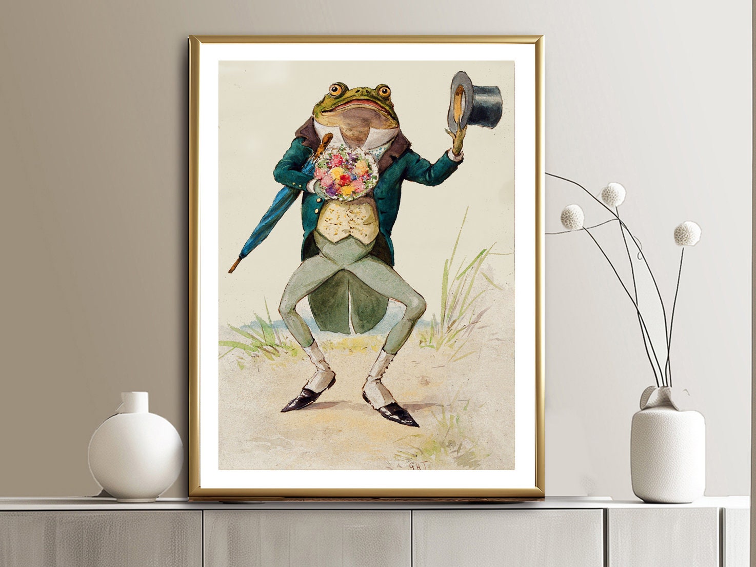 Vintage Gentleman Frog Print: Humorous Animal Wall Art
