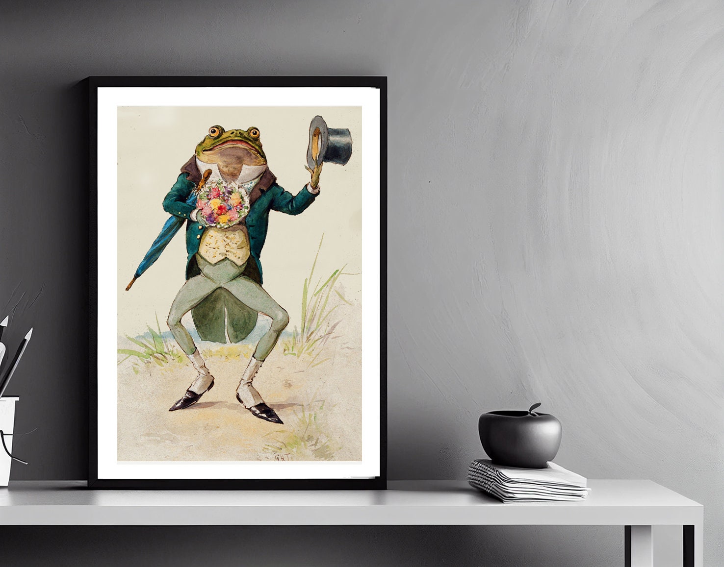 The Gentleman Frog Antique Vintage Print - Poster Paper or Canvas Print / Gift Idea