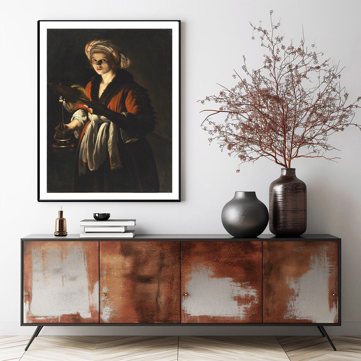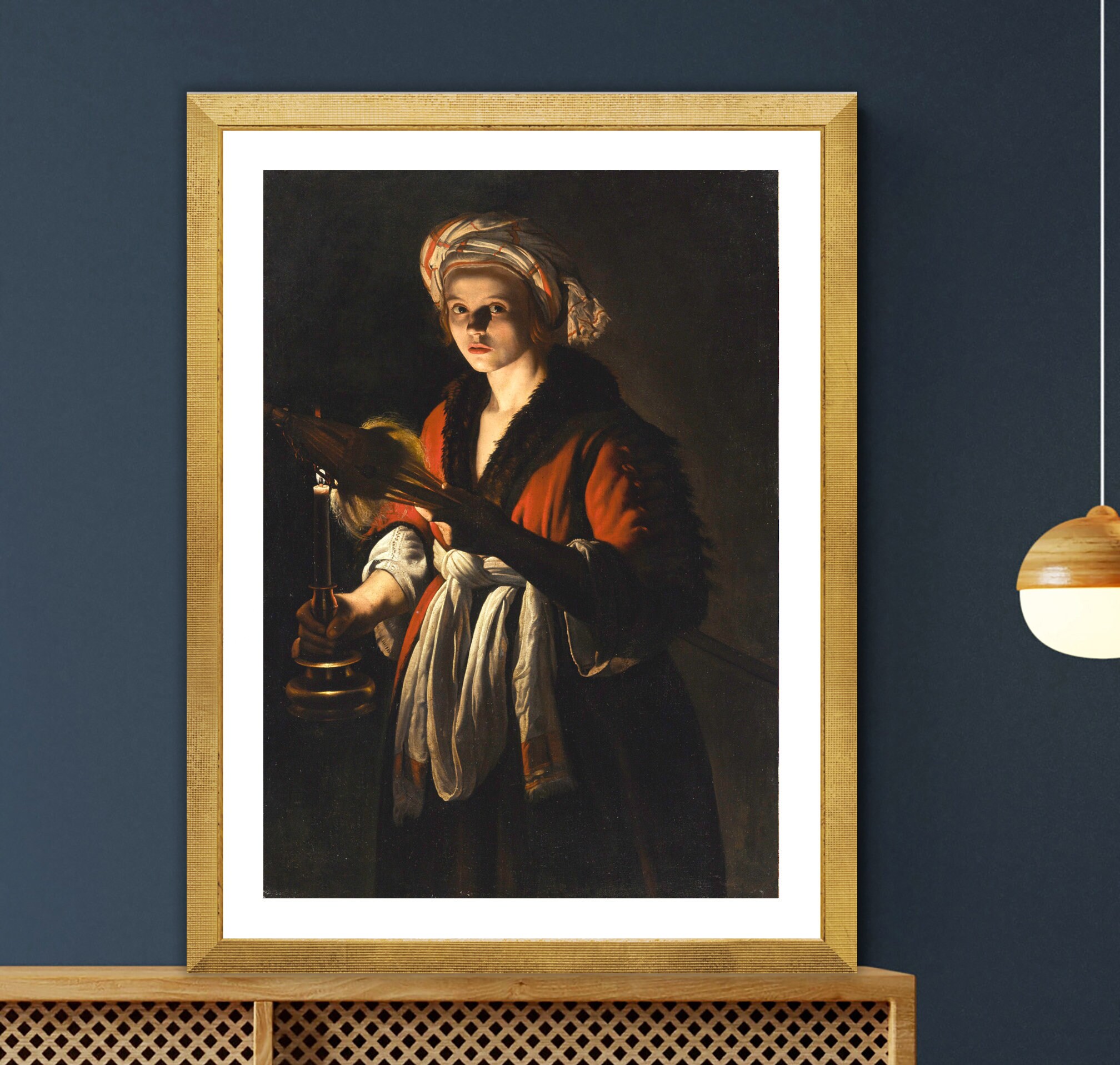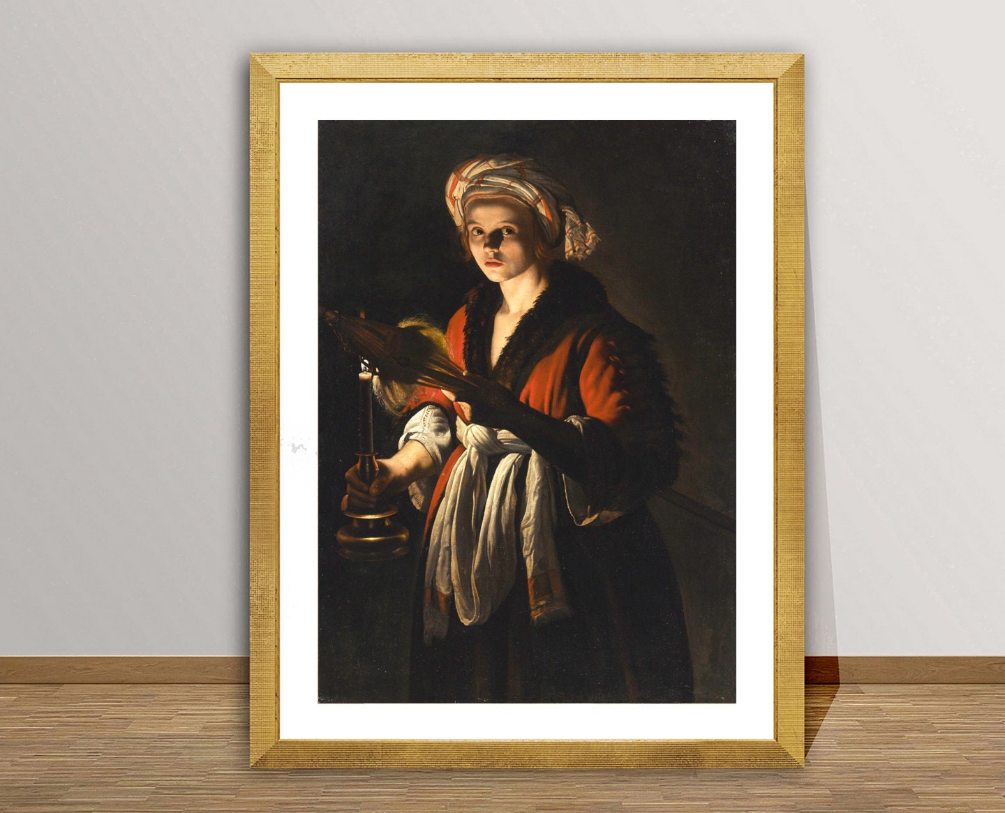 A Young Woman Holding a Distaff Before a Lit Candle by Adam de Coster - Poster Paper or Canvas Print / Gift Idea / Wall Decor