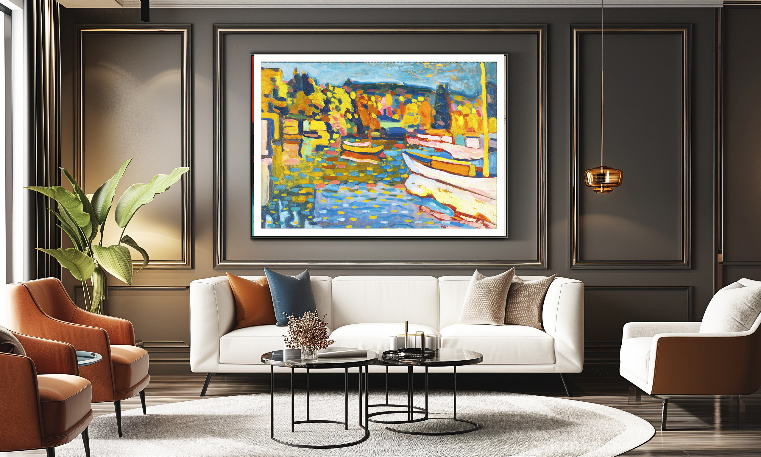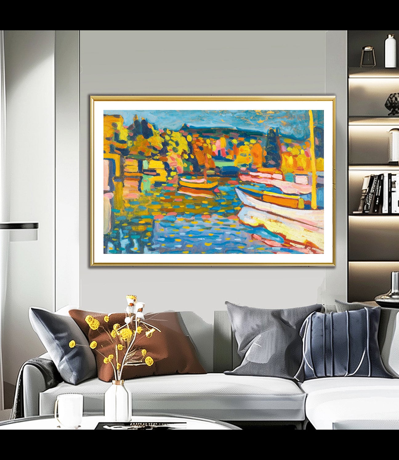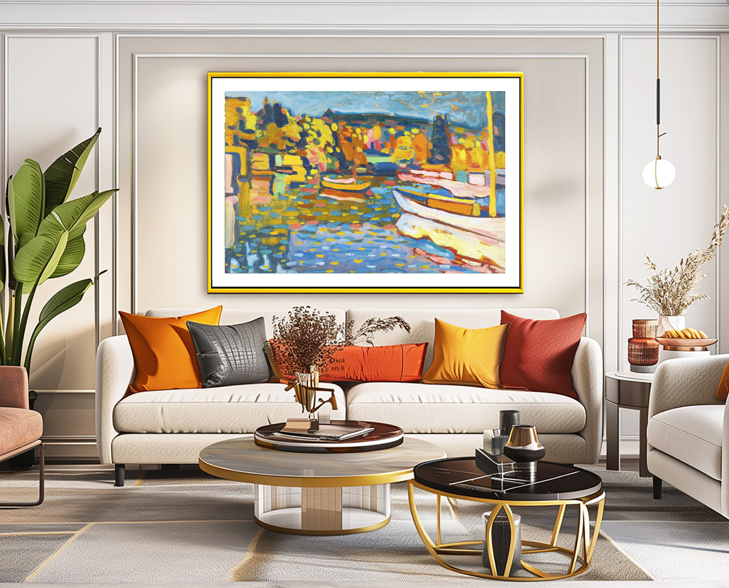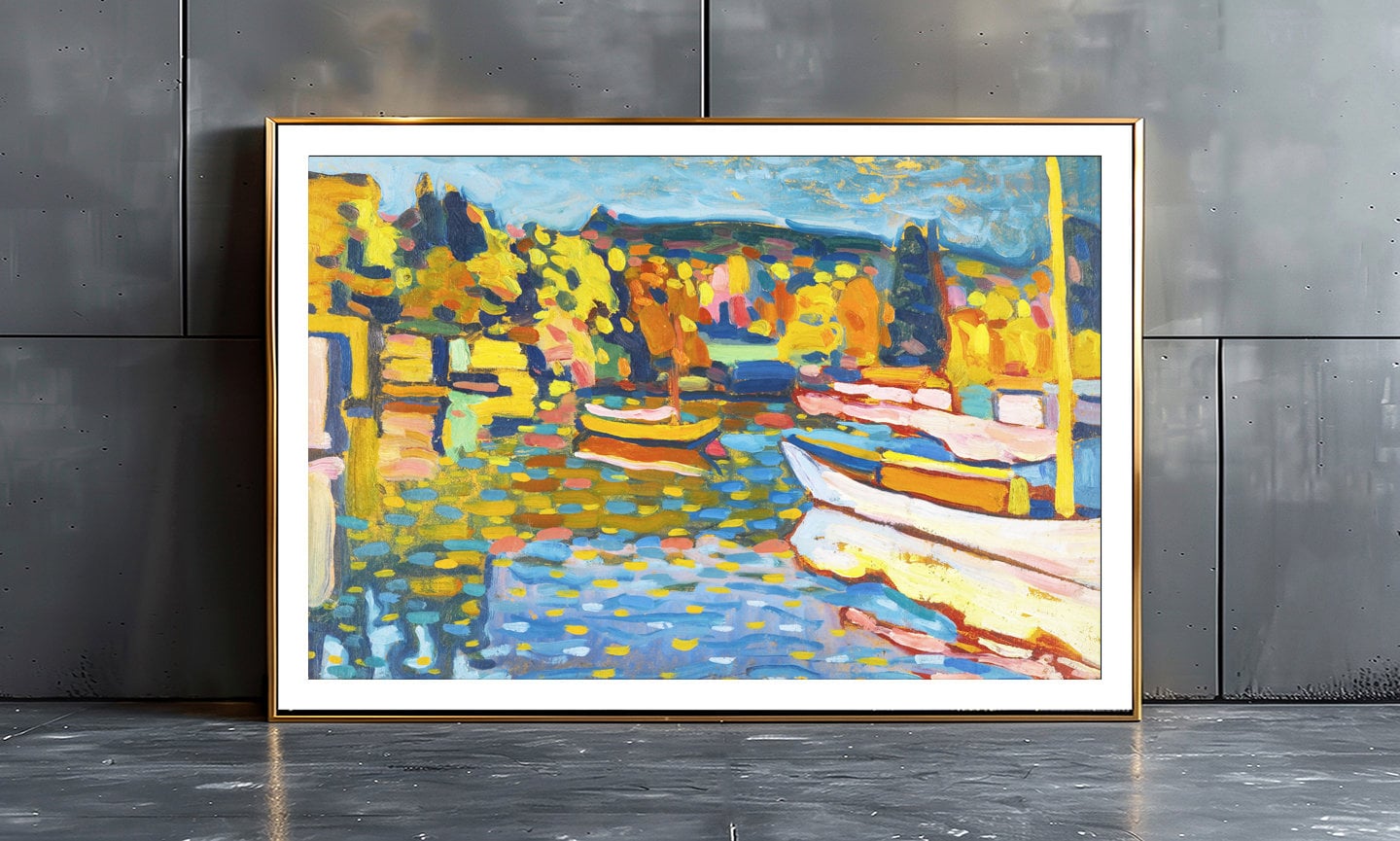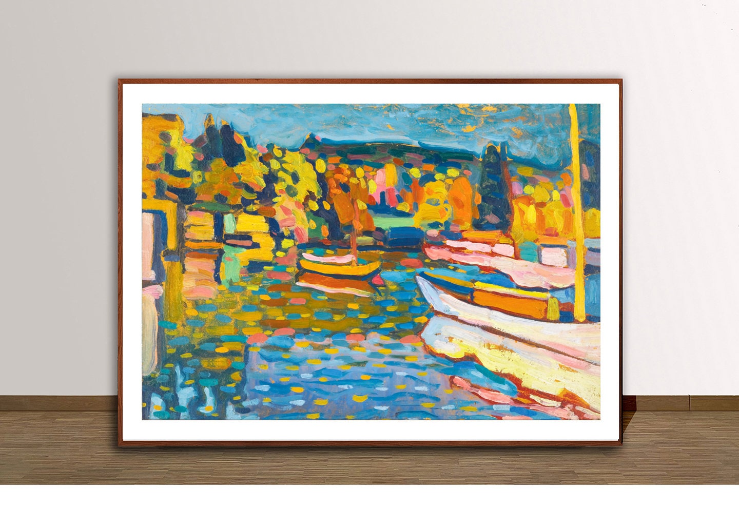 Autumn Landscape with Boats by Wassily Kandinsky Fine Art Print, Modern Artwork, Seascape Poster, Abstract Wall Décor