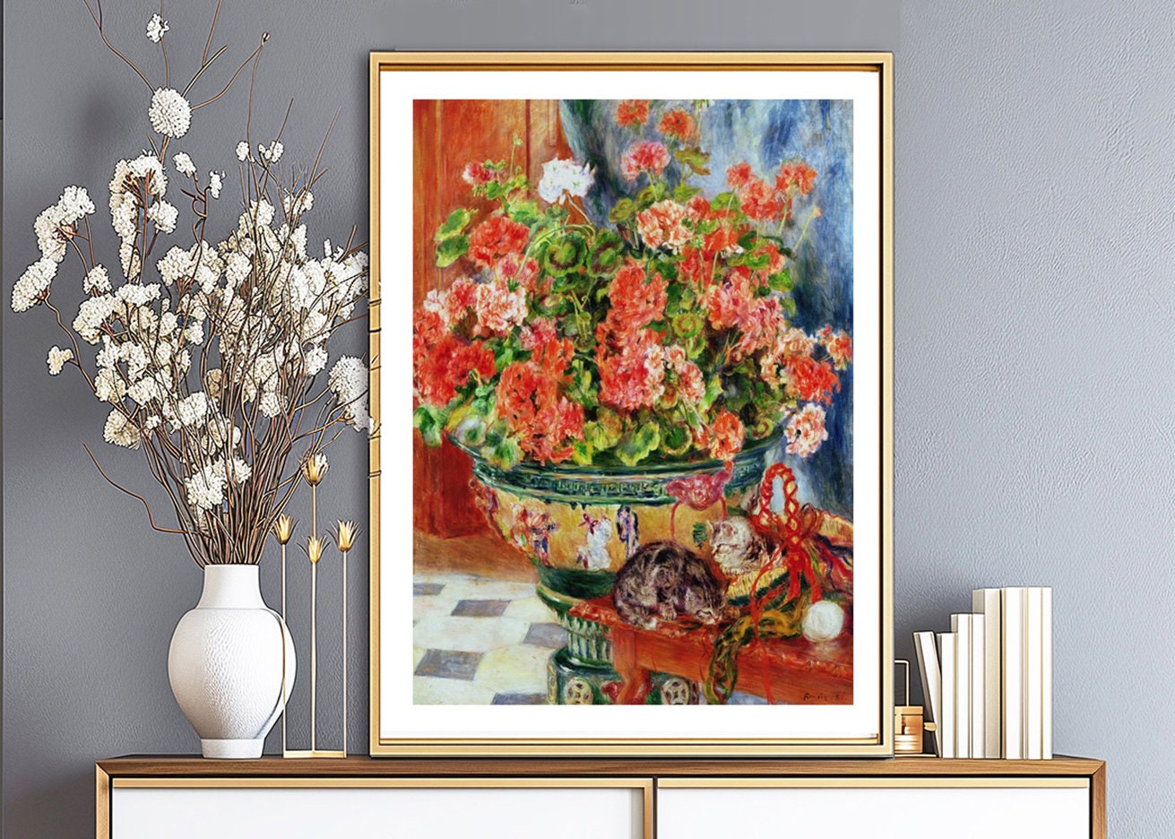Renoir Geraniums and Cats Print: Still Life Wall Decor