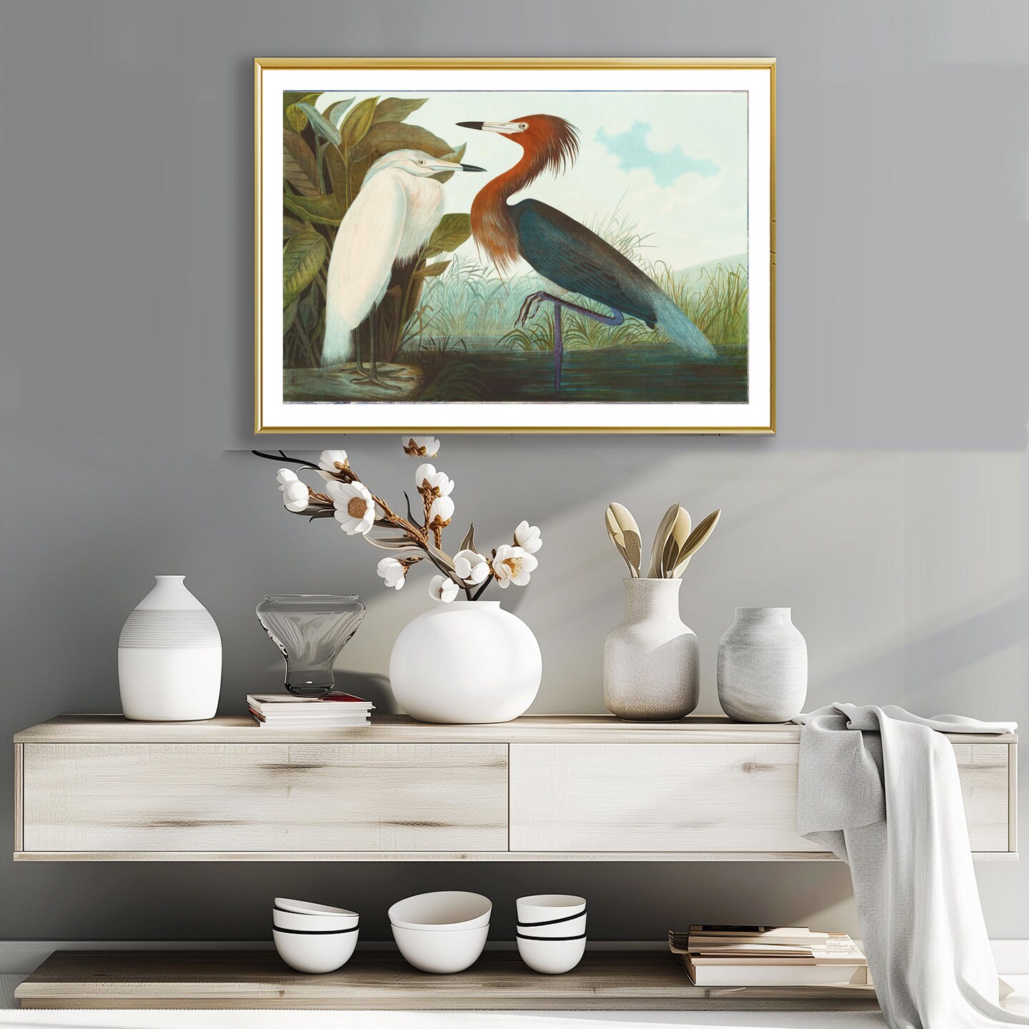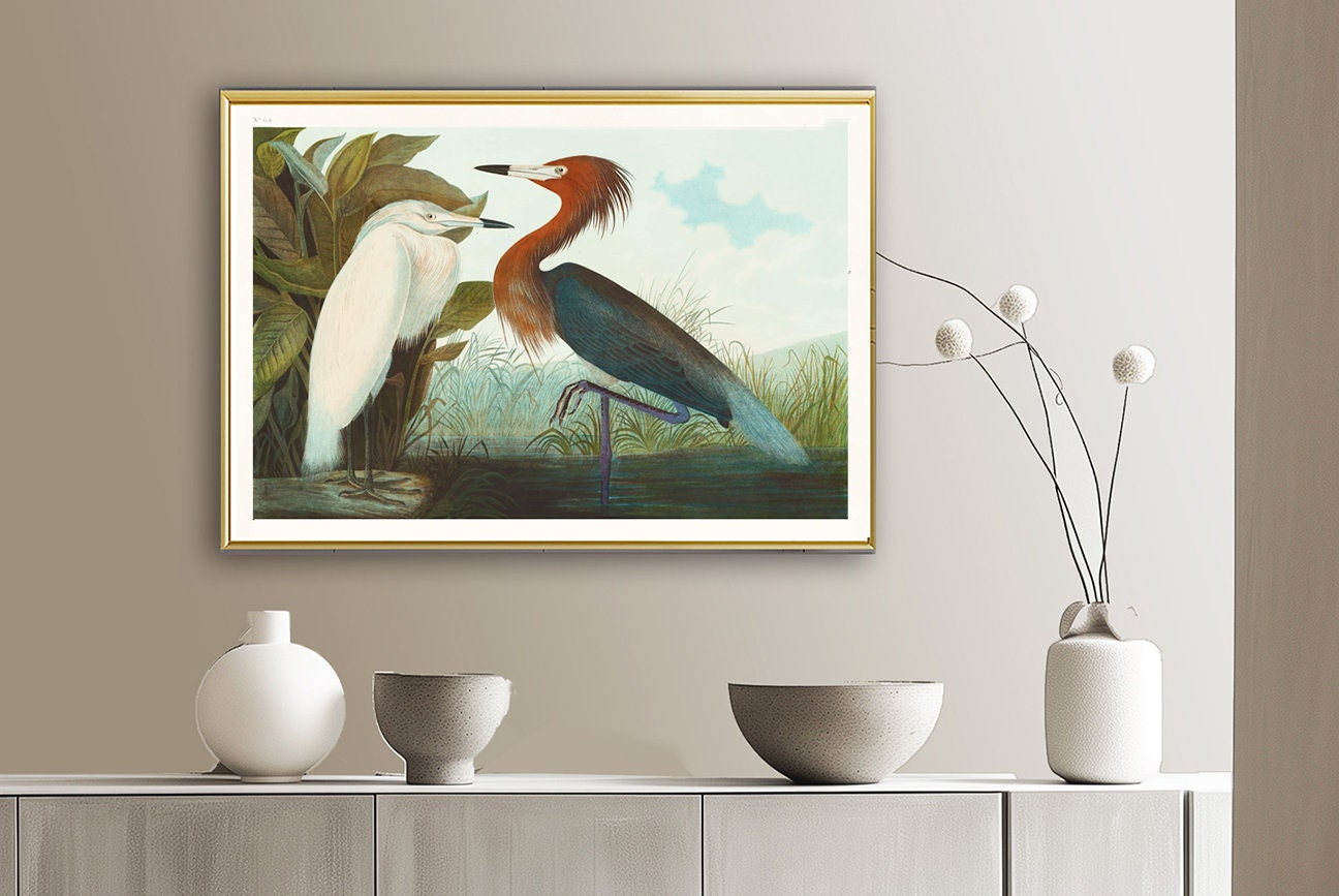 Reddish Egret by John James Audubon Fine Art Print - Poster Paper or Canvas Print, Gift for Bird Lovers