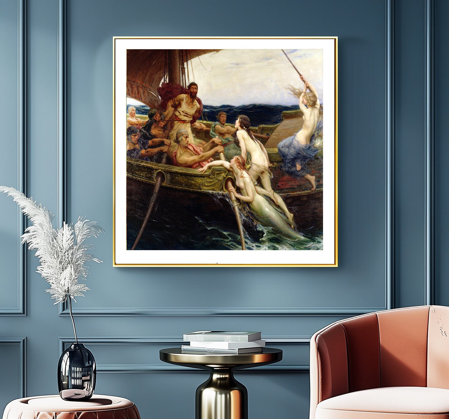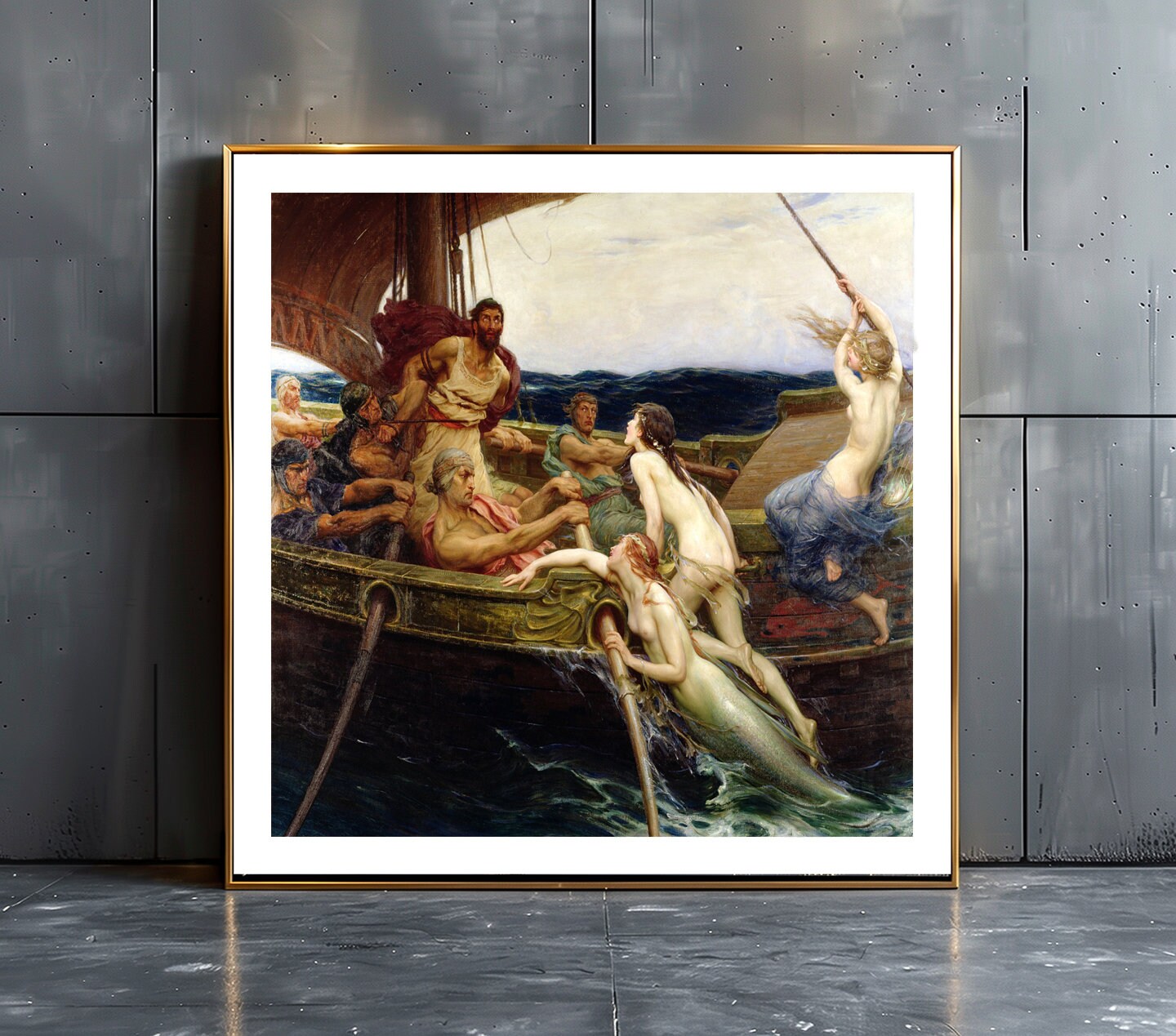Ulysses and the Sirens by Herbert James Draper Fine Art Poster - Poster Paper or Canvas Print