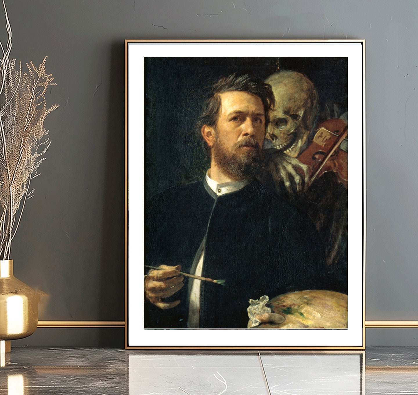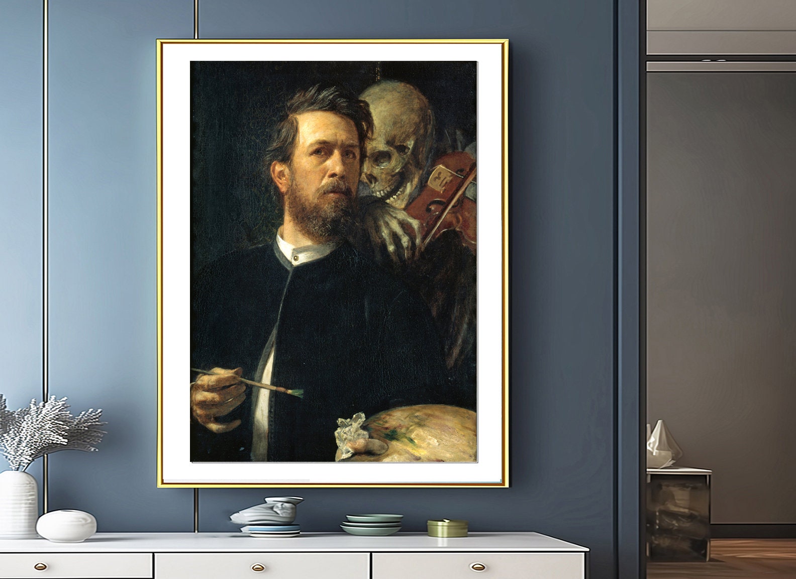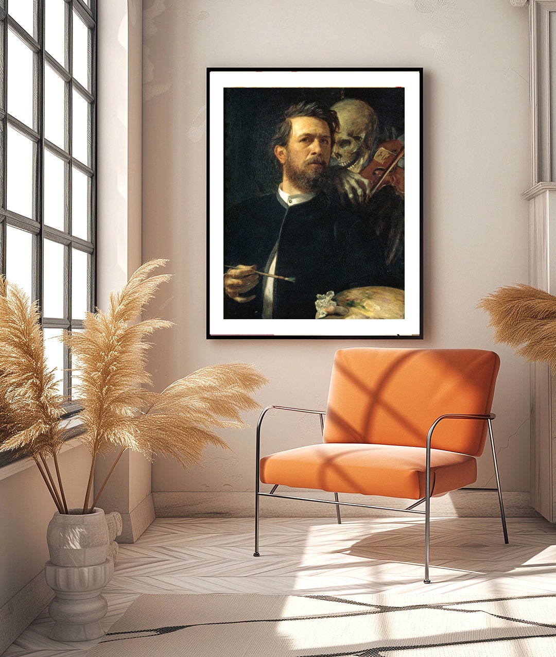 Self-Portrait with Death Playing the Fiddle by Arnold Böcklin Fine Art Print - Poster Paper or Canvas Print / Gift Idea