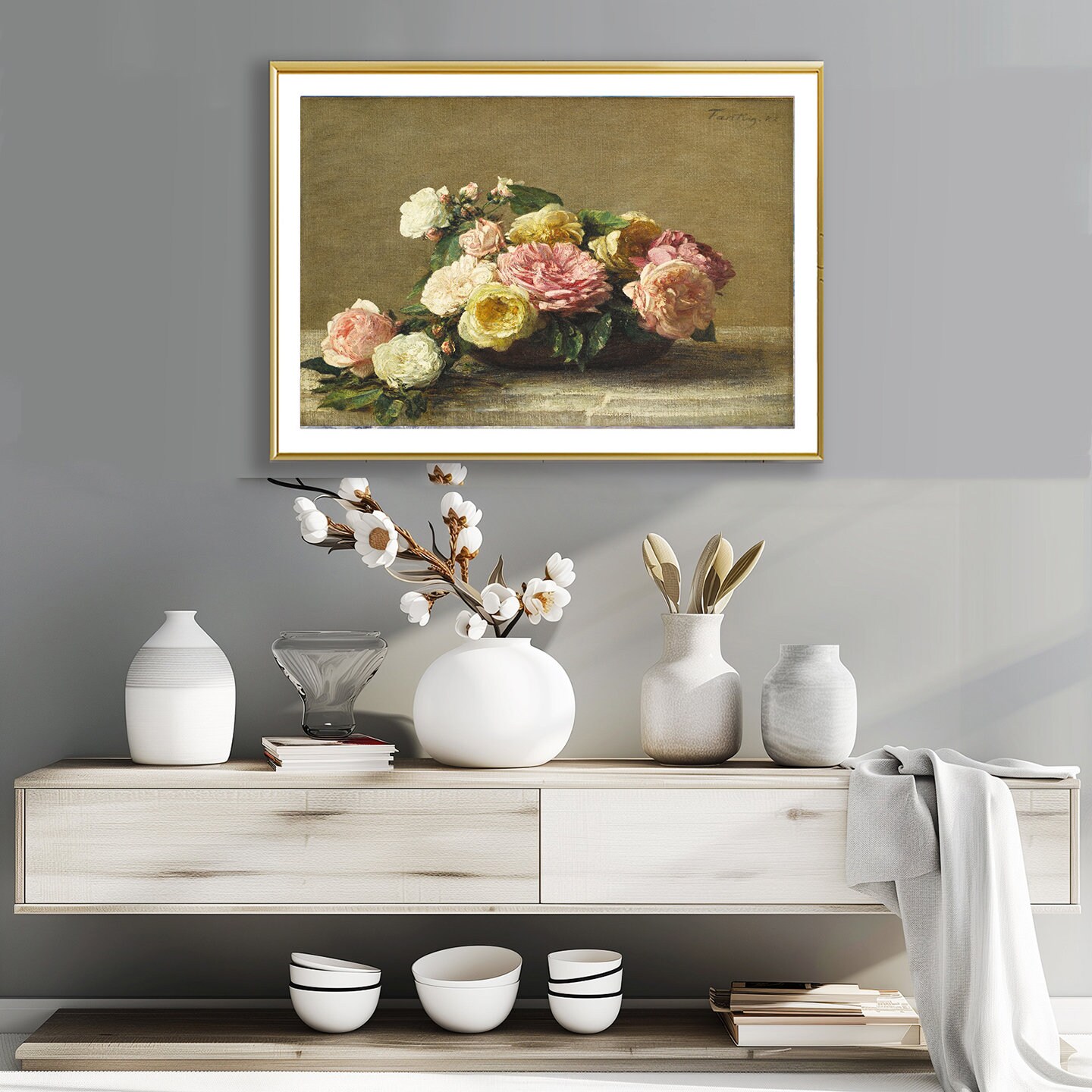 Roses in a Bowl by Henri Fantin Latour Fine Art Print - Poster Paper or Canvas Print / Gift Idea / Wall Decor