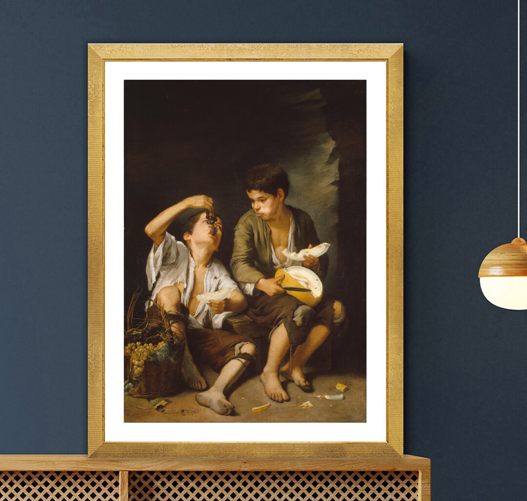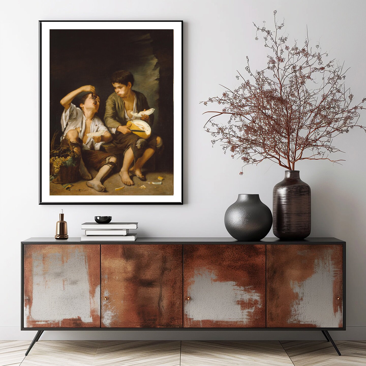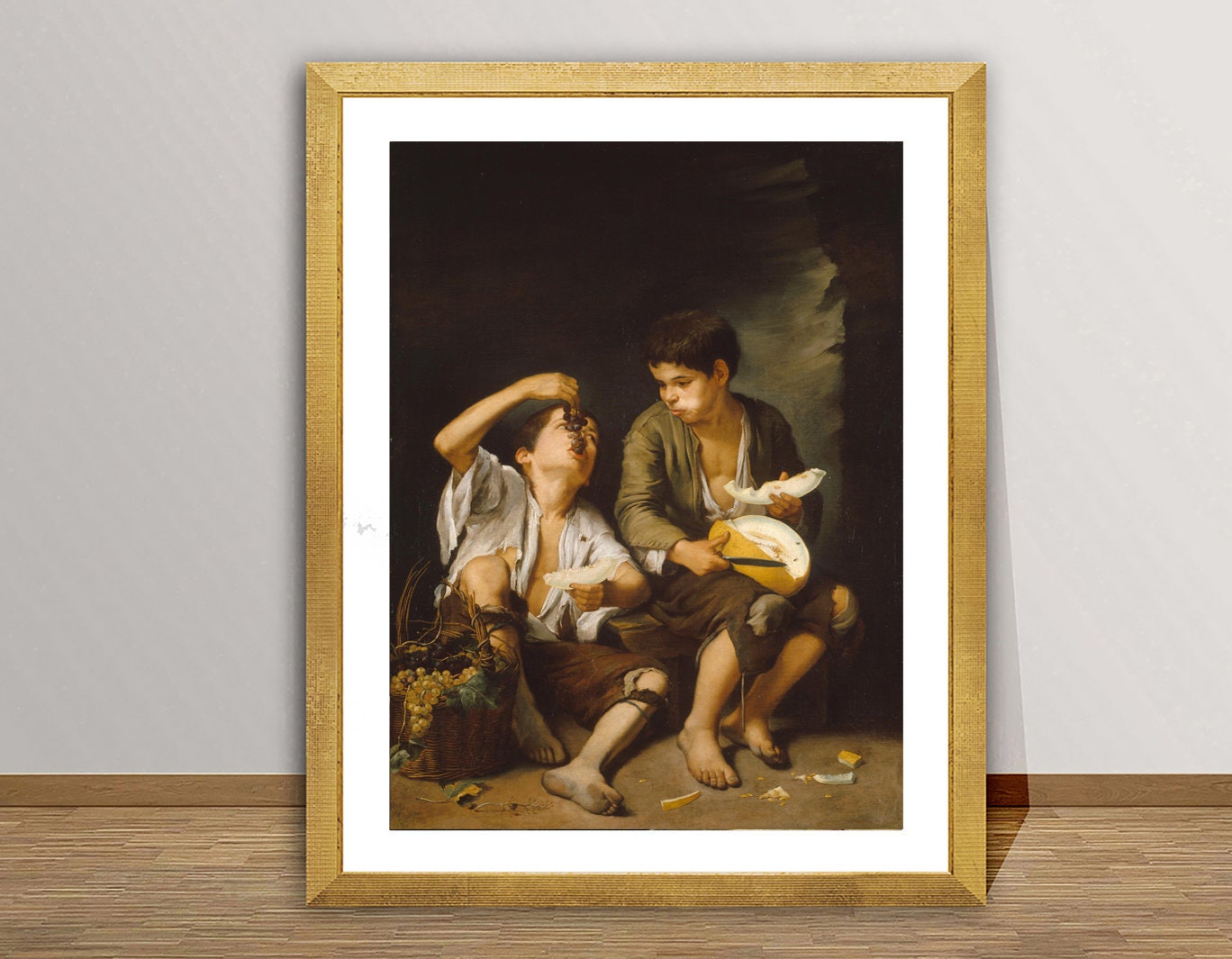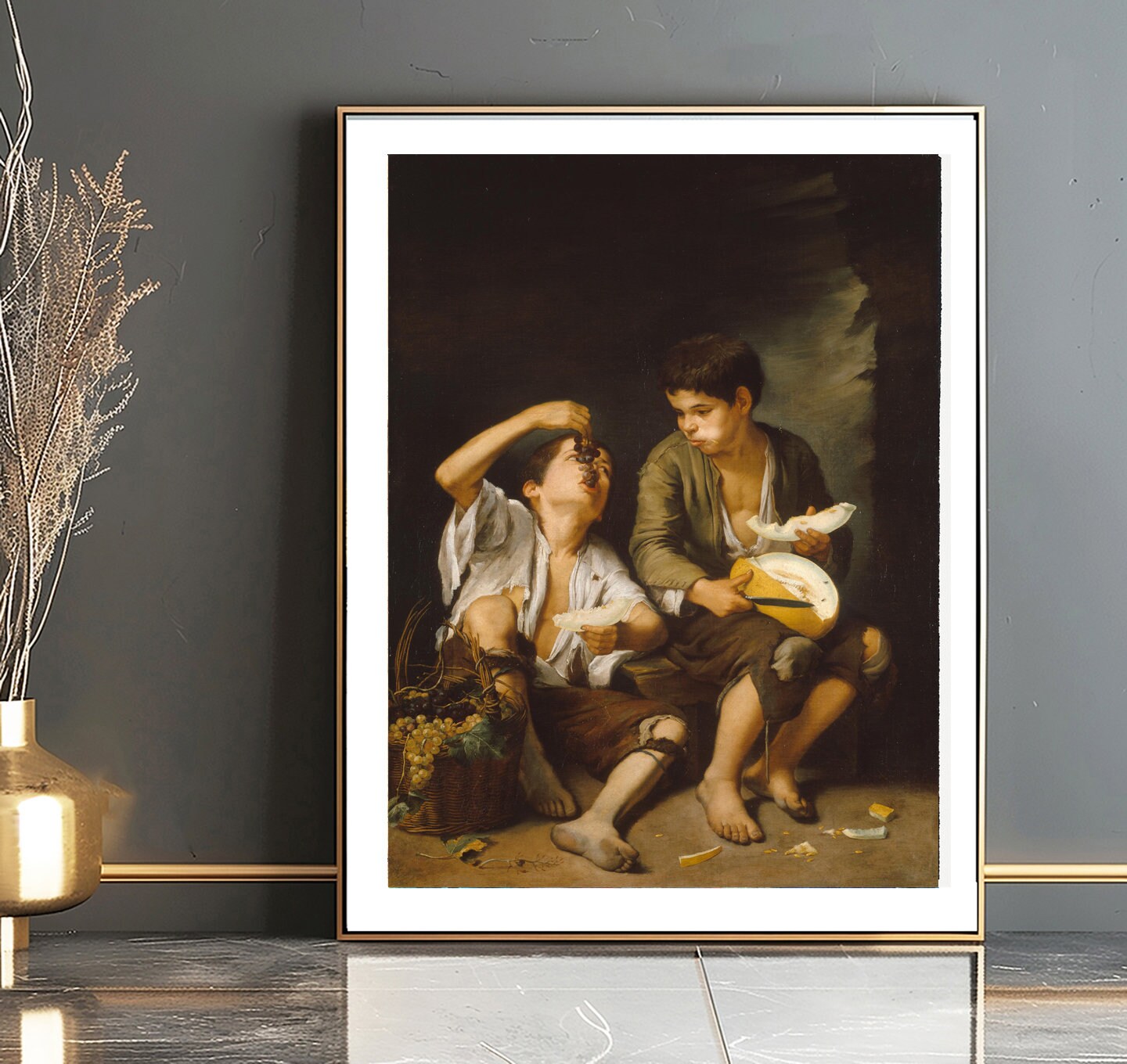 Two Children Eating a Melon and Grapes by Bartolome Esteban Murillo Fine Art Print - Poster Paper, Canvas Print / Gift Idea / Wall Decor