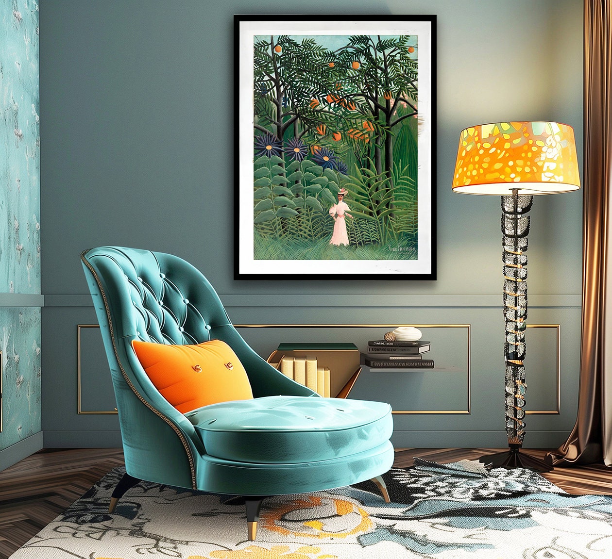 Woman Walking in an Exotic Forest by Henri Rousseau Fine Art Print - Poster Paper or Canvas Print / Gift Idea