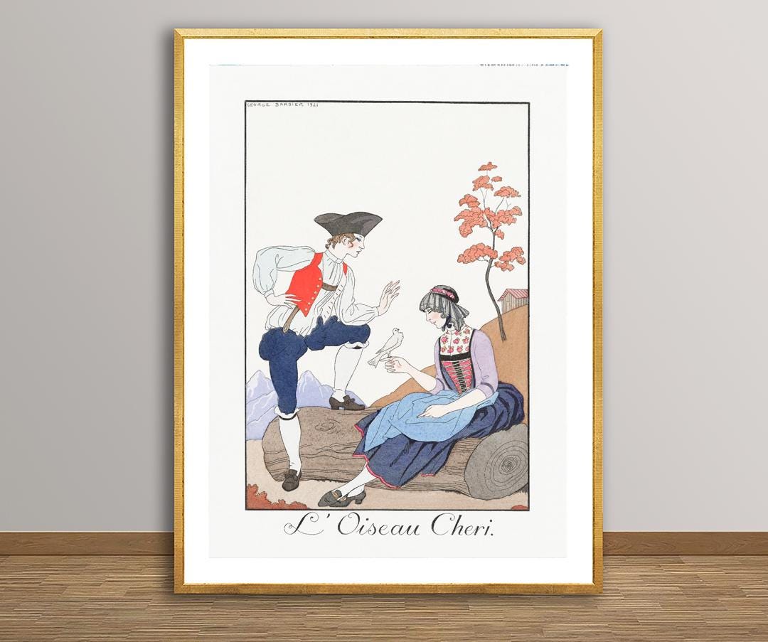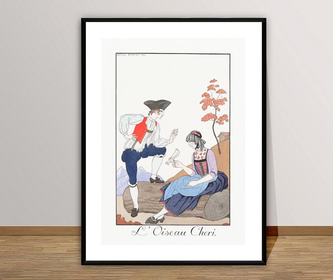 L'Oiseau Cheri Fashion Illustration by George Barbier Vintage Poster - Poster Paper or Canvas Print / Gift Idea