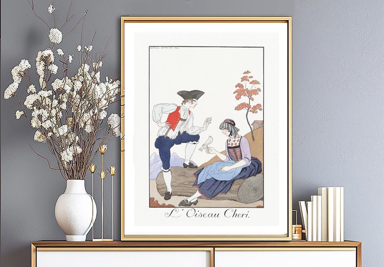 George Barbier Art Deco Fashion Illustration: L'Oiseau Cheri Vintage Poster