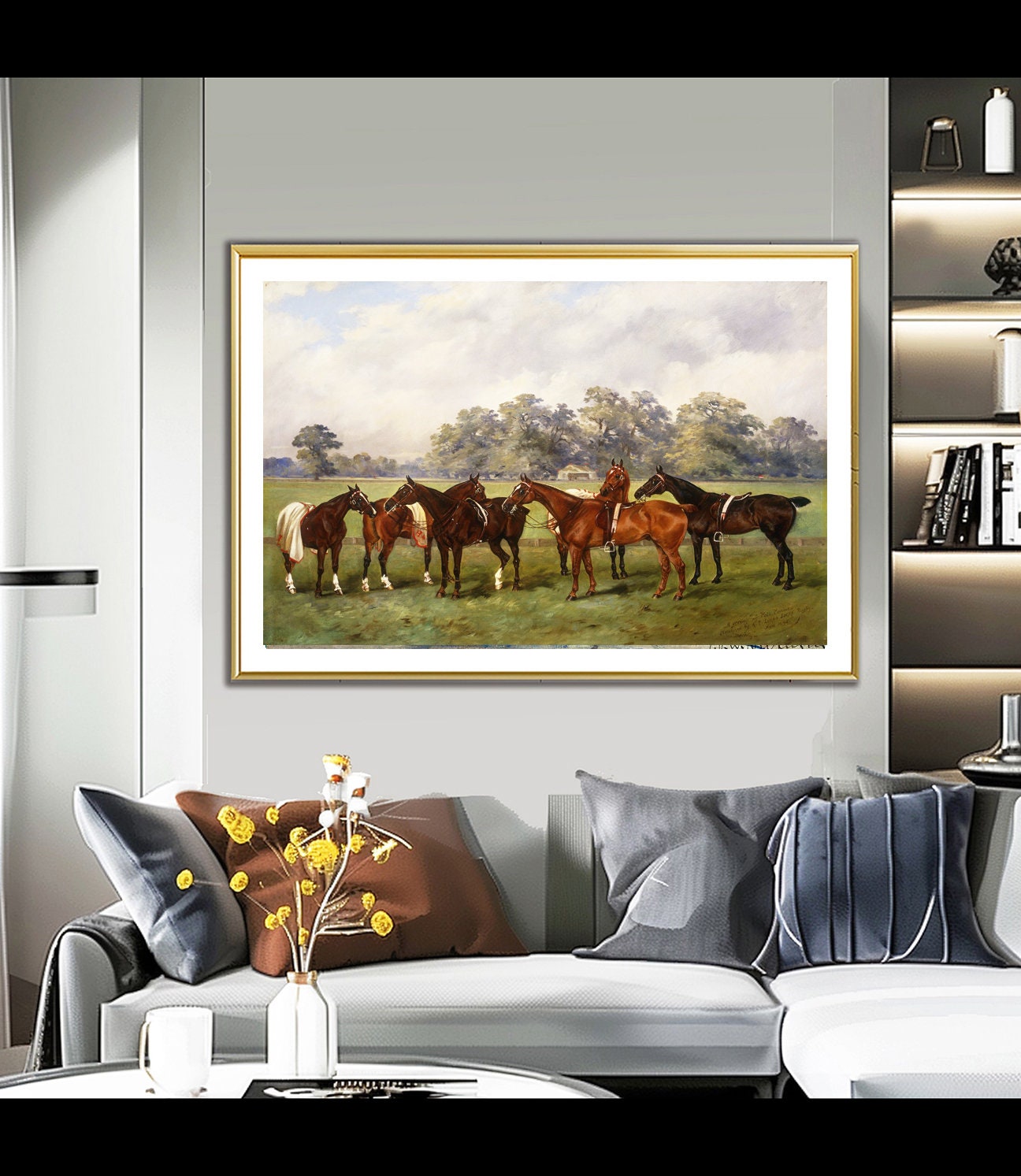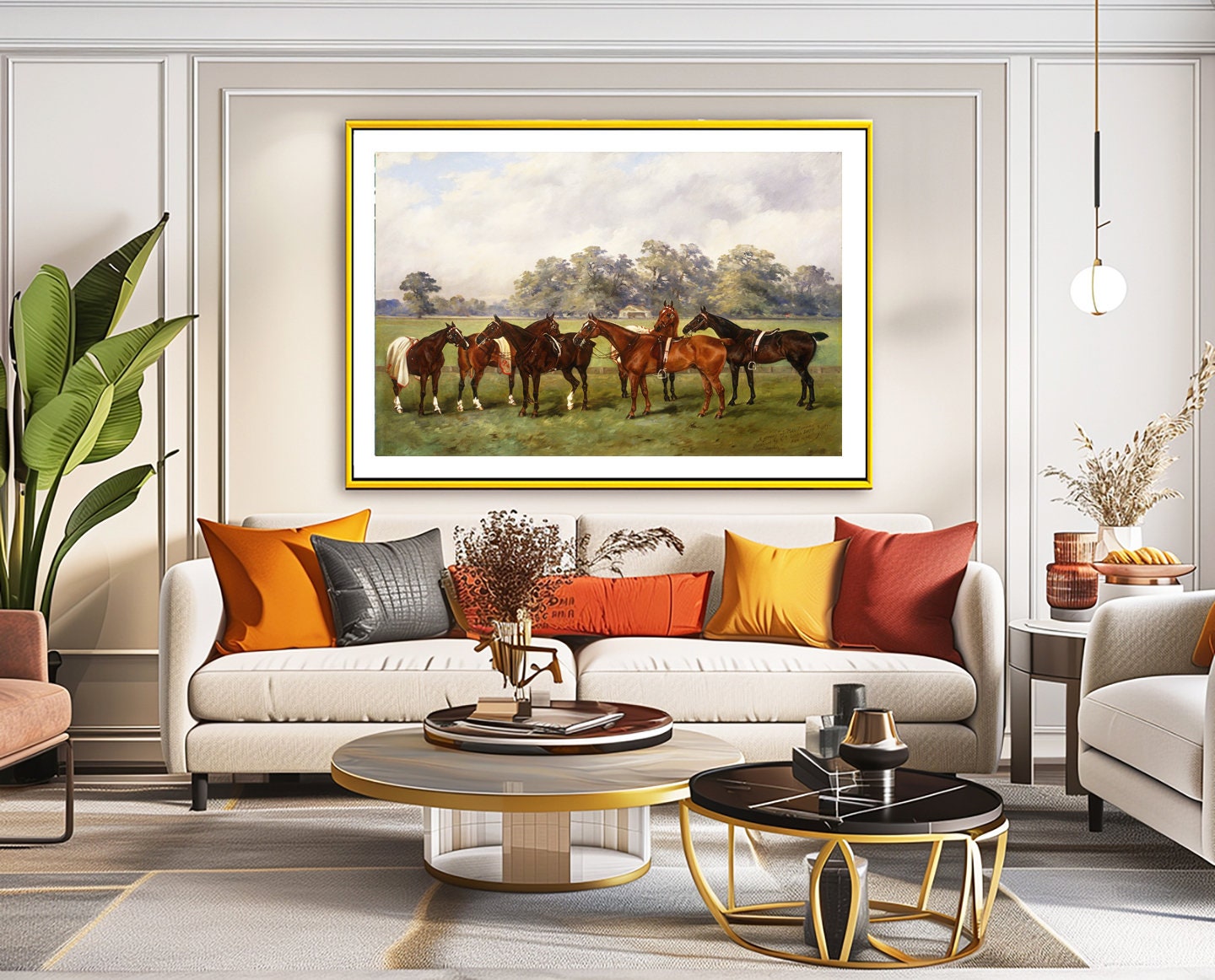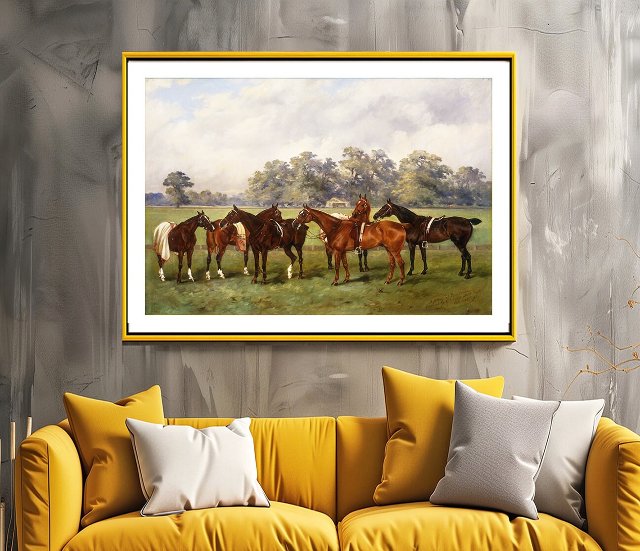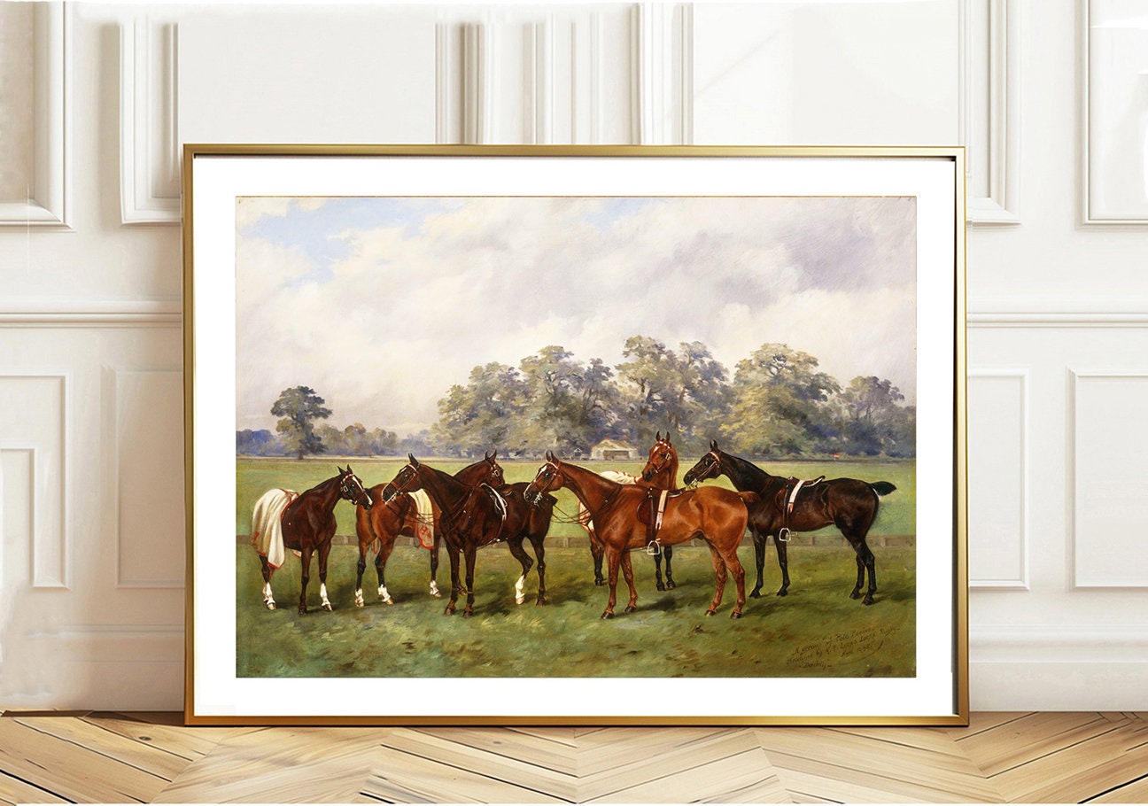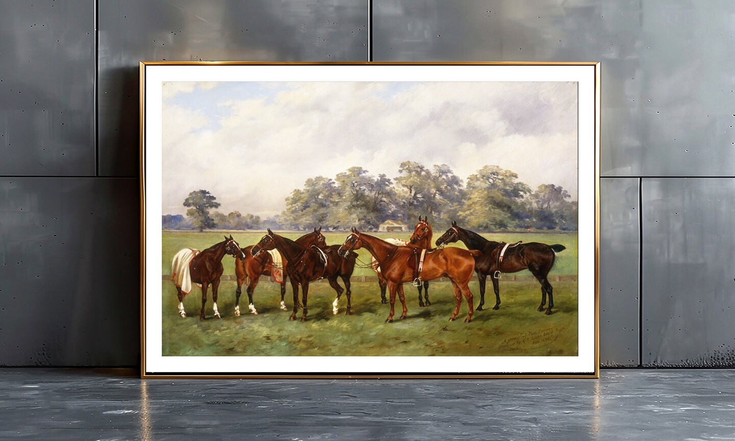 A Group of Polo Ponies, Dainty, Gold, Redskin, Miss Edge, and Piper by Henry Frederick Lucas-Lucas - Poster Paper or Canvas Print / Gift Idea / Wall Decor