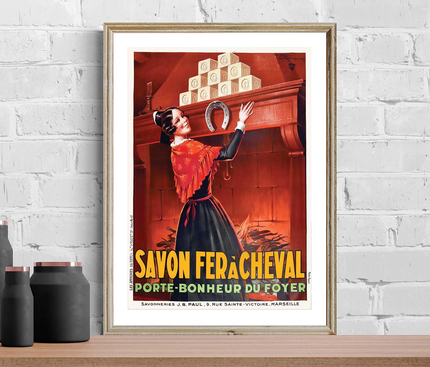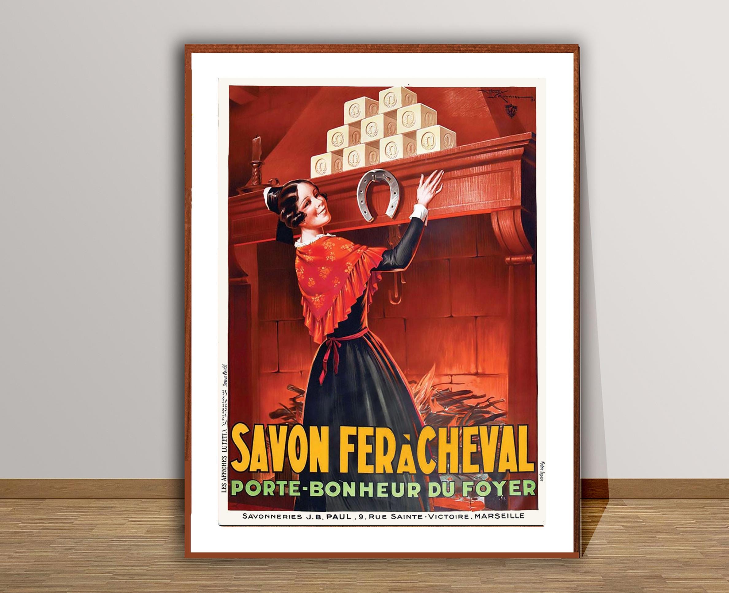 Savon Fer a Cheval Porte Bonheur du Foyer Vintage Poster - Poster Paper or Canvas Print / Gift Idea / Wall Decor