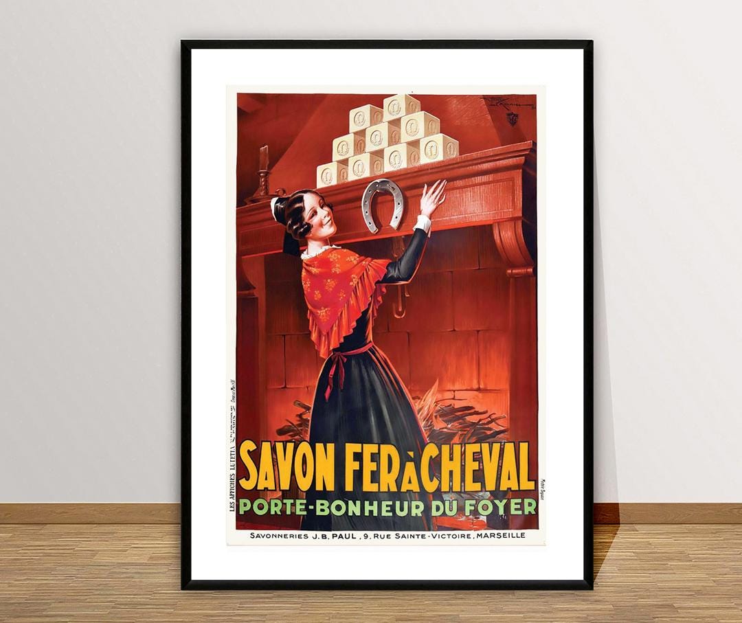 Savon Fer a Cheval Porte Bonheur du Foyer Vintage Poster - Retro Wall Art, Soap Artwork, Advertisement Print