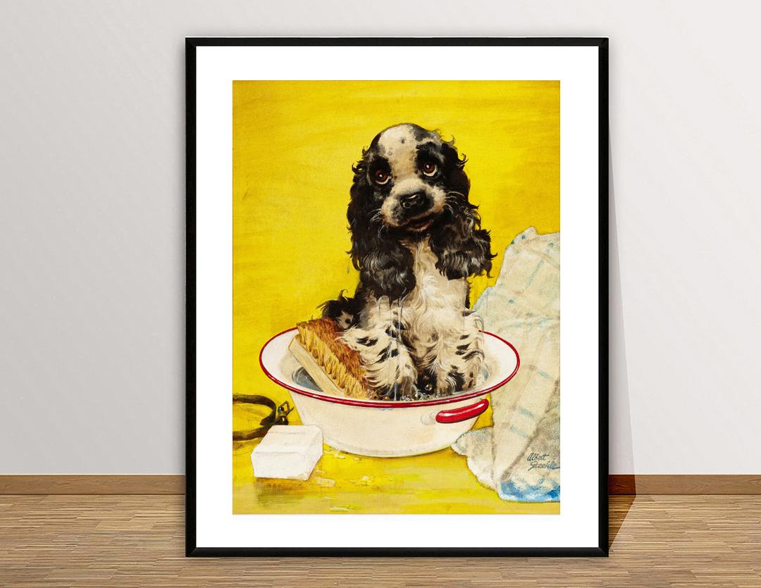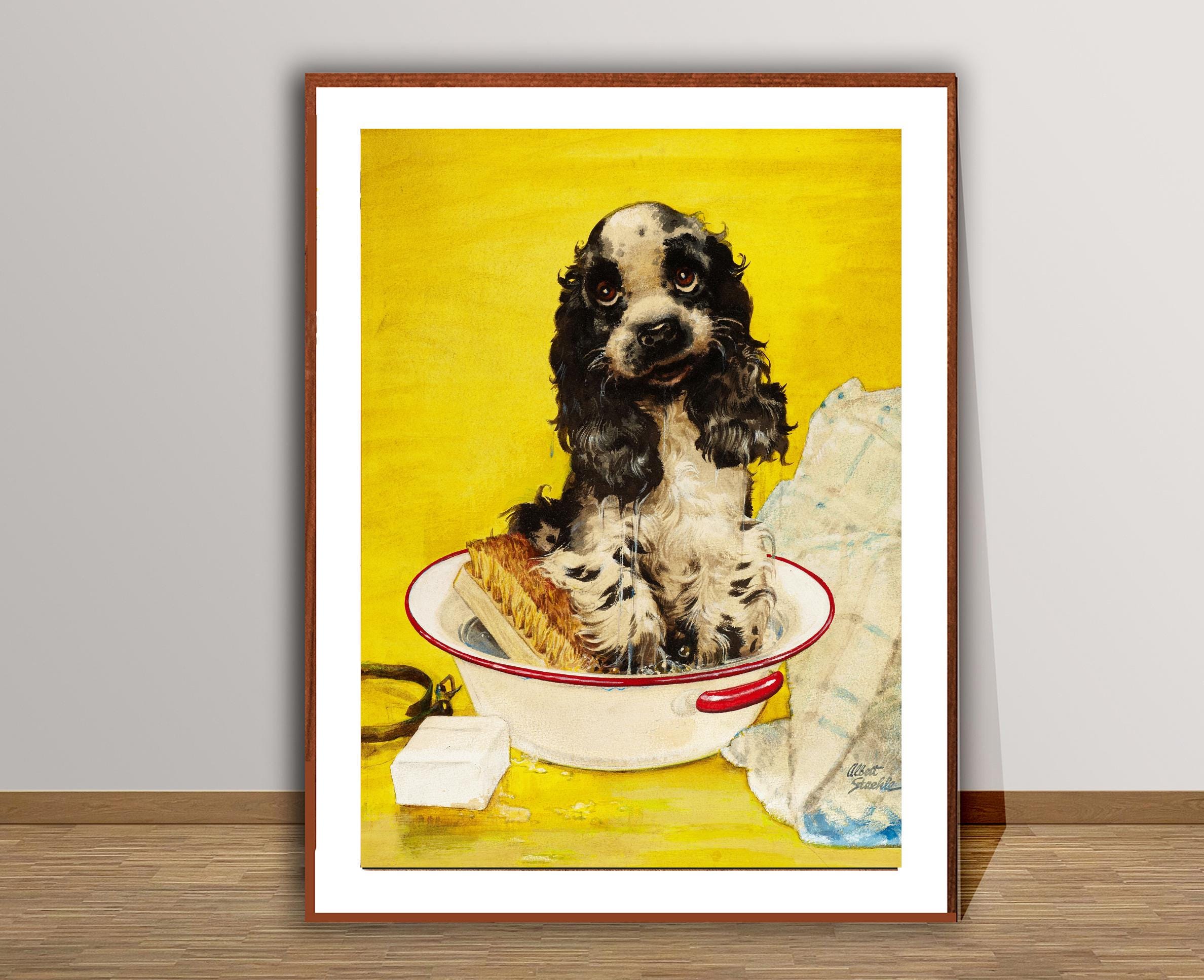 The Dog is Bathing Vintage Poster - Cute Dog Poster, Bathroom Decor / Gift Idea/ Wall Decor