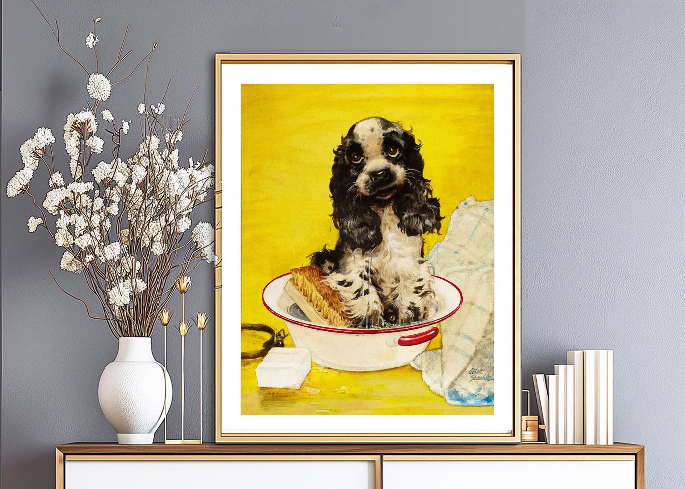 The Dog is Bathing Vintage Poster - Poster Paper, Canvas Print / Gift Idea/ Wall Decor