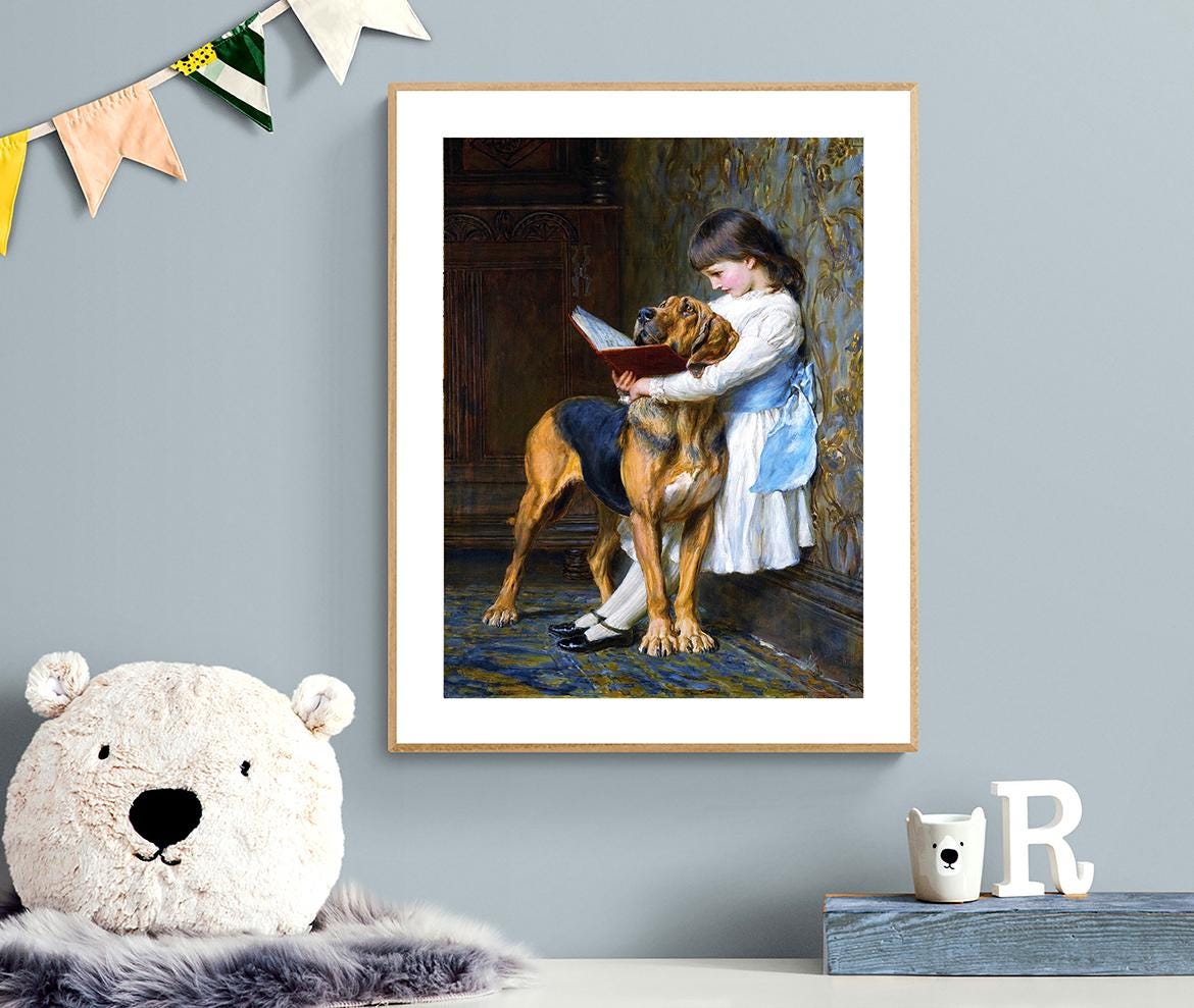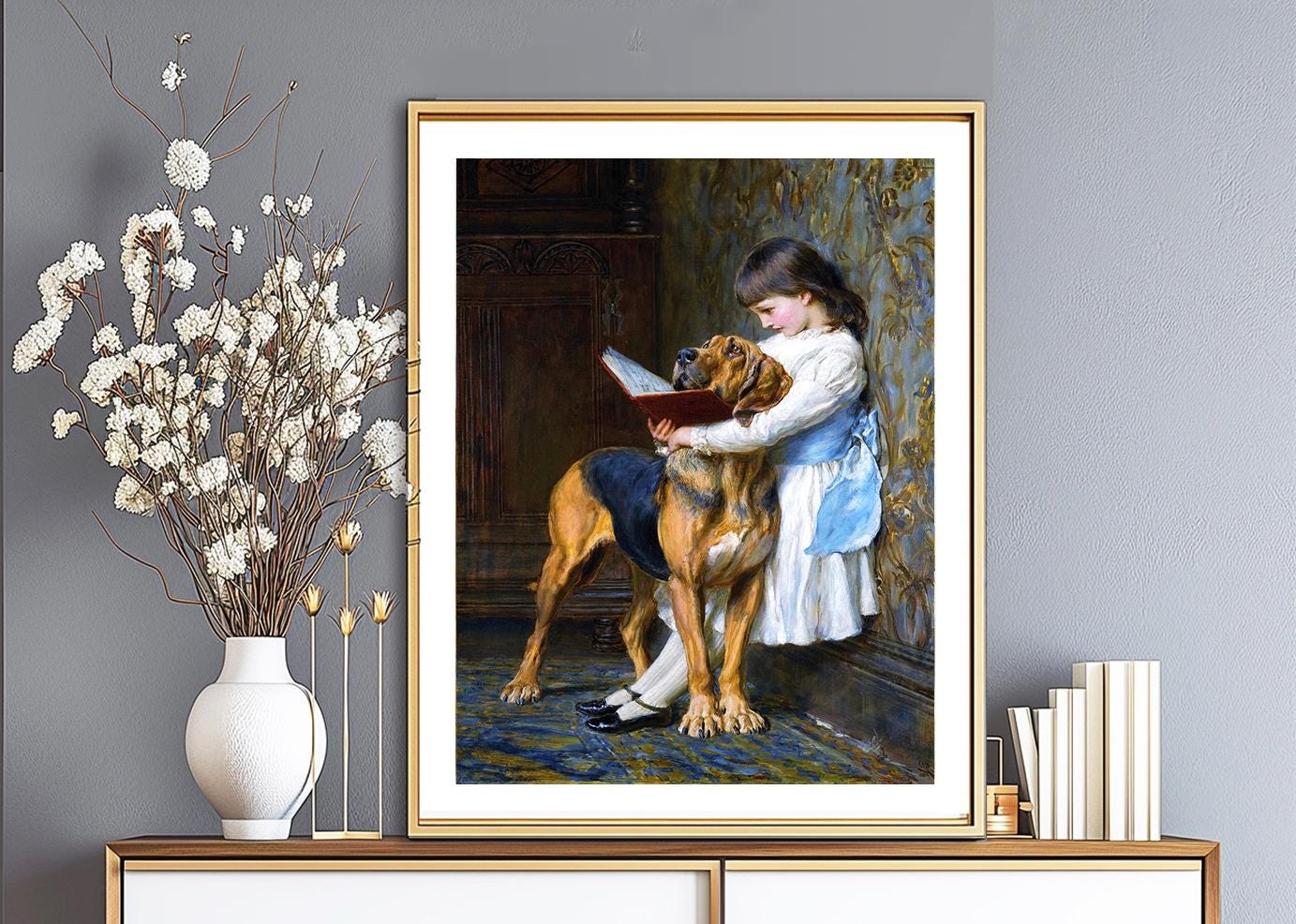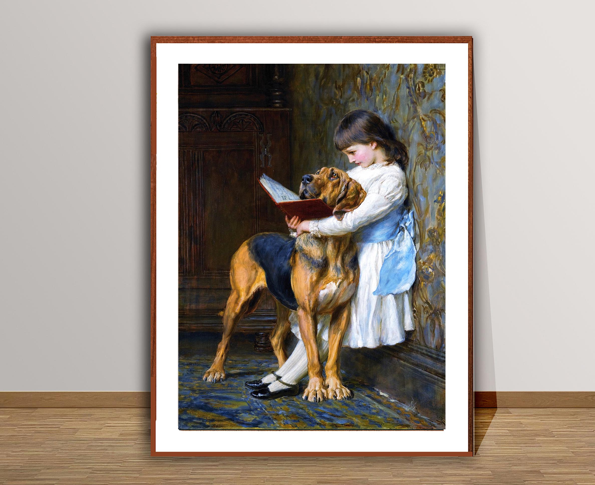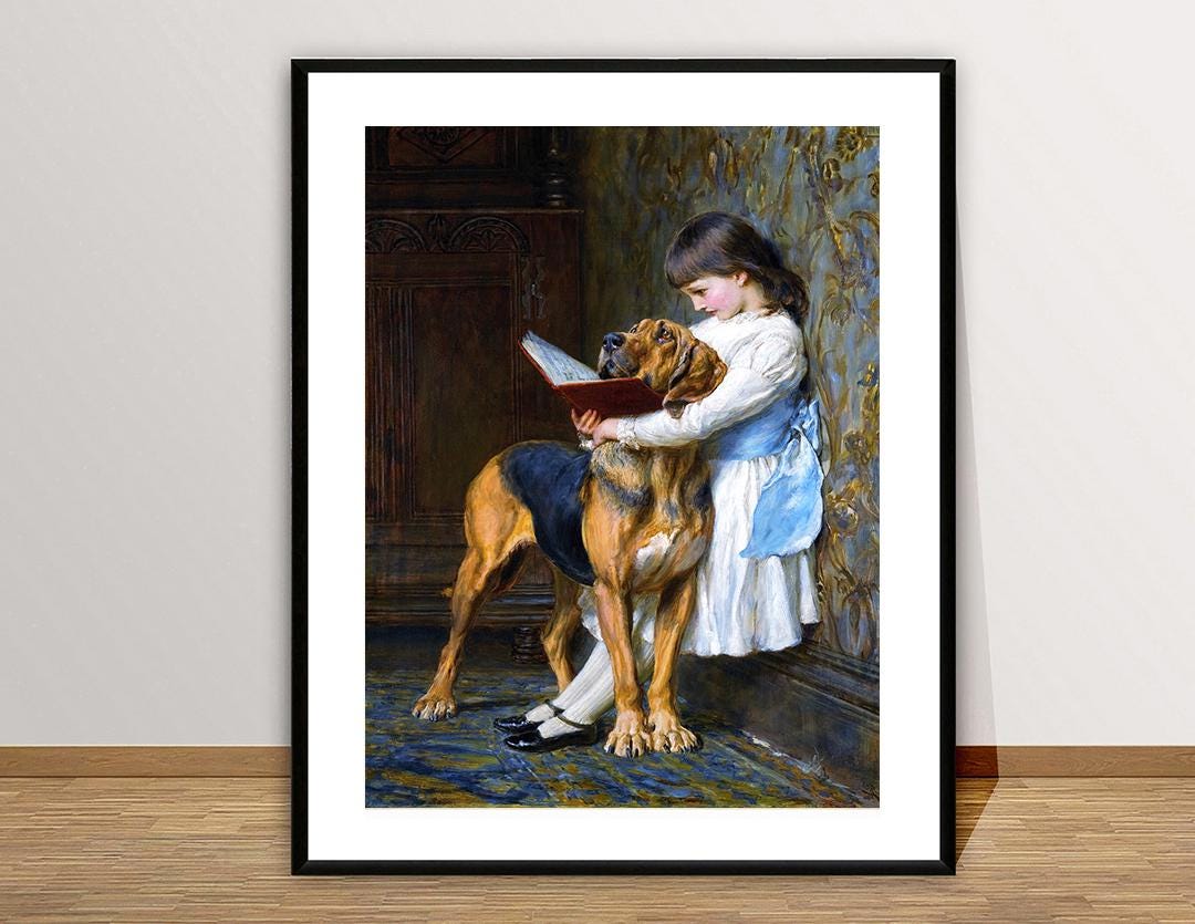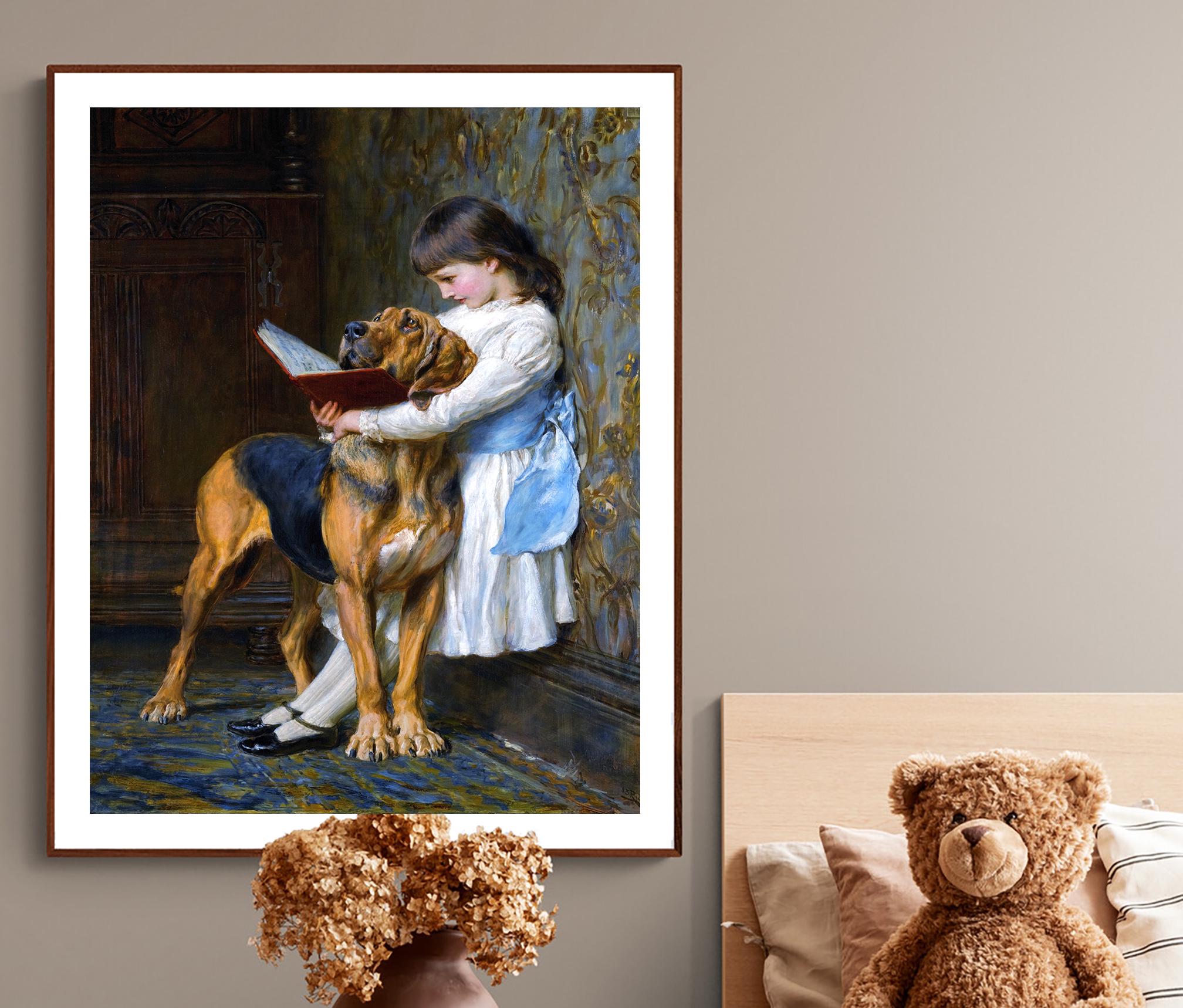 Briton Riviere Print: Girl Reading to Dog, Animal Lover Wall Art