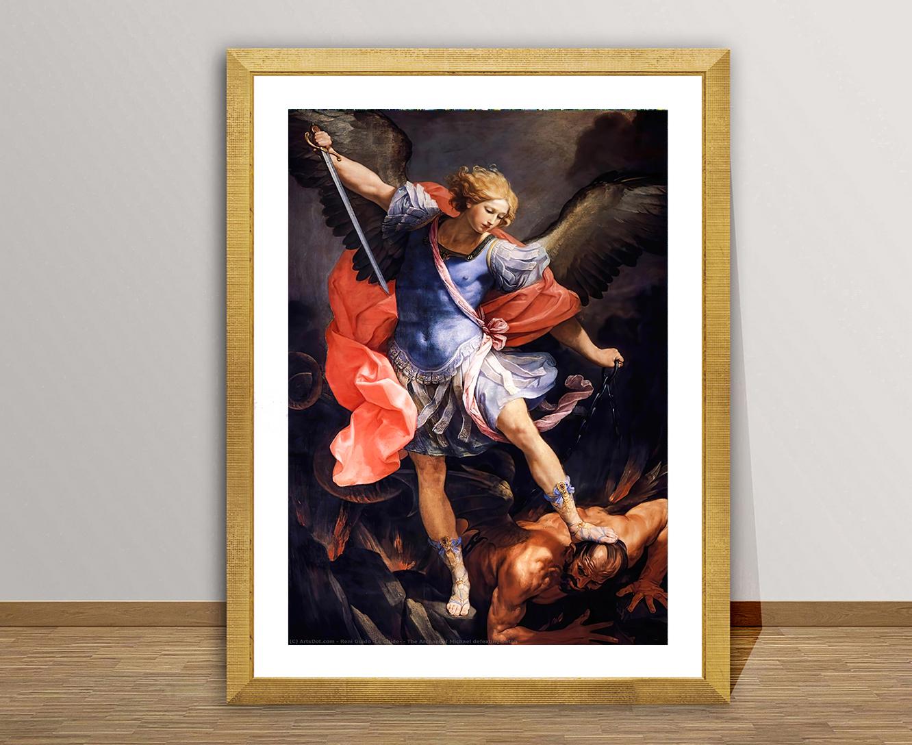 The Archangel Michael defeating Satan by Guido Reni Fine Art Print - Poster Paper and Canvas Print