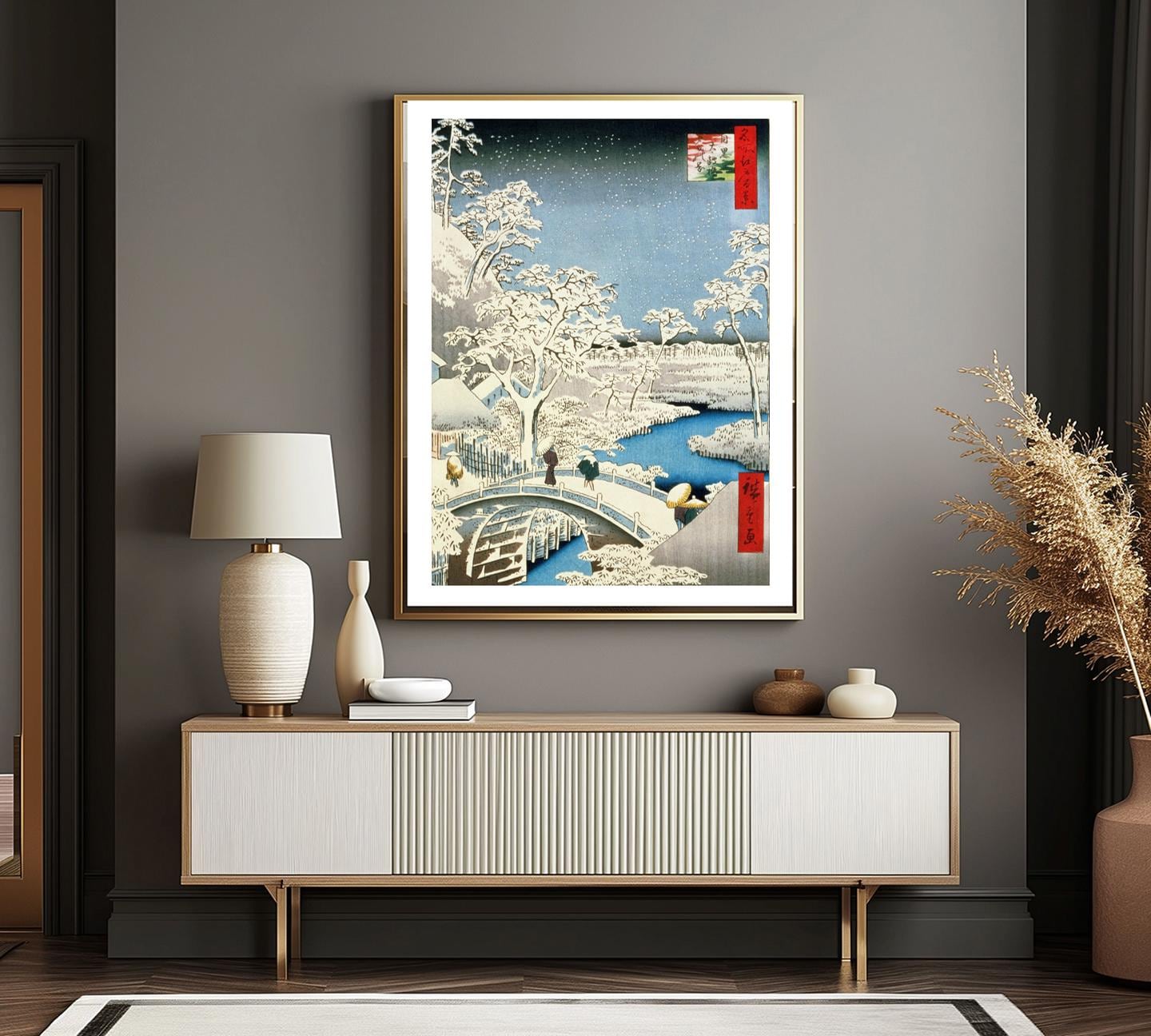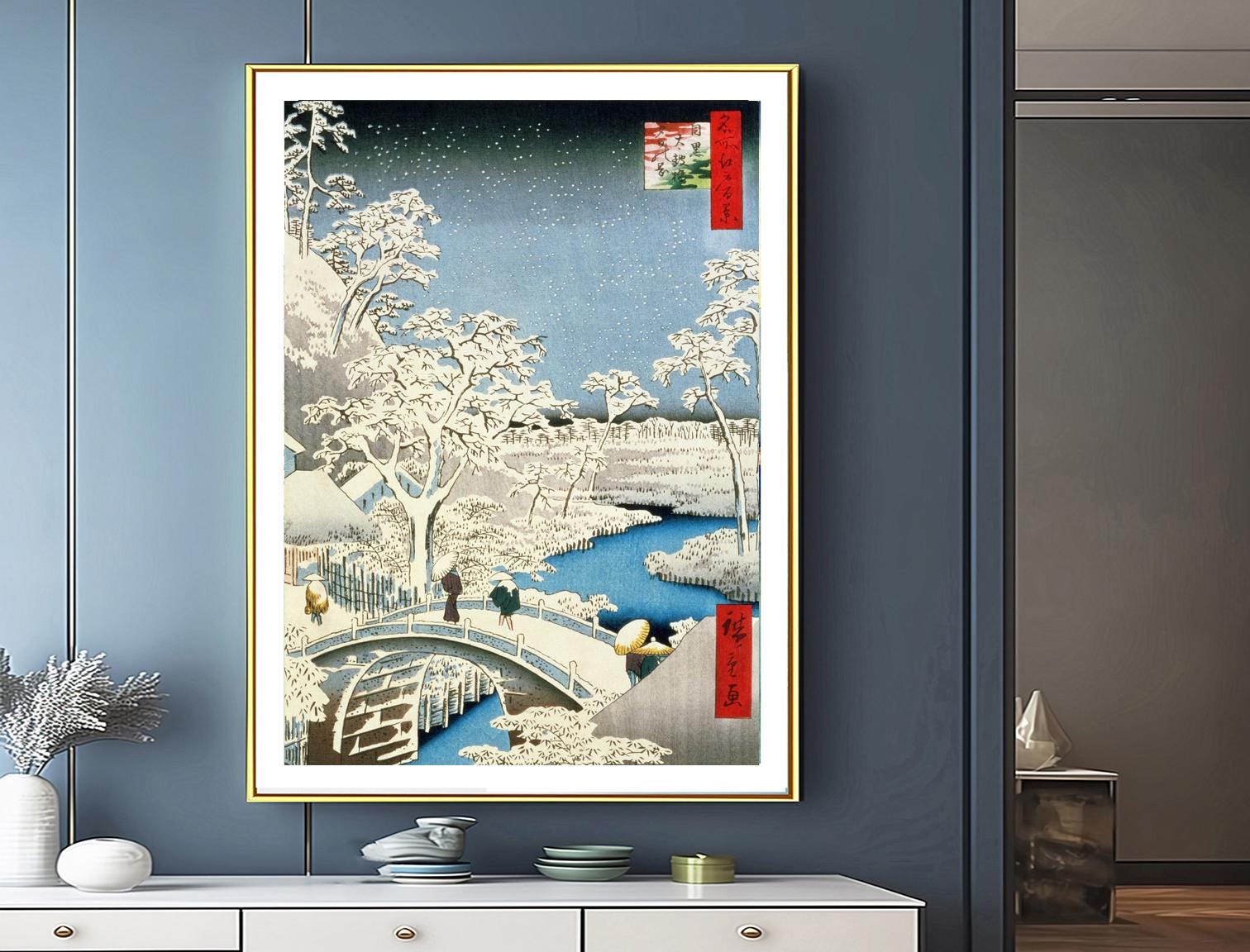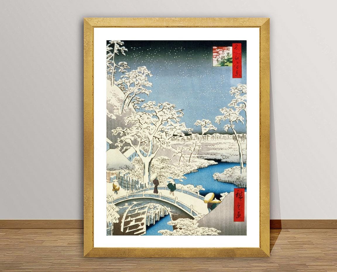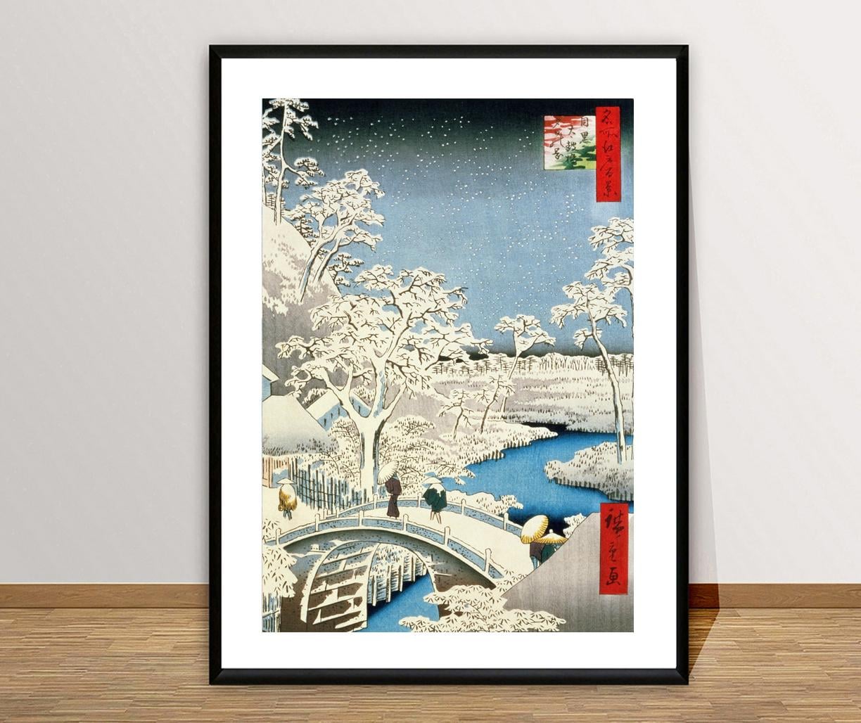 Ando Hiroshige Drum Bridge Print: Japanese Painting Wall Decor