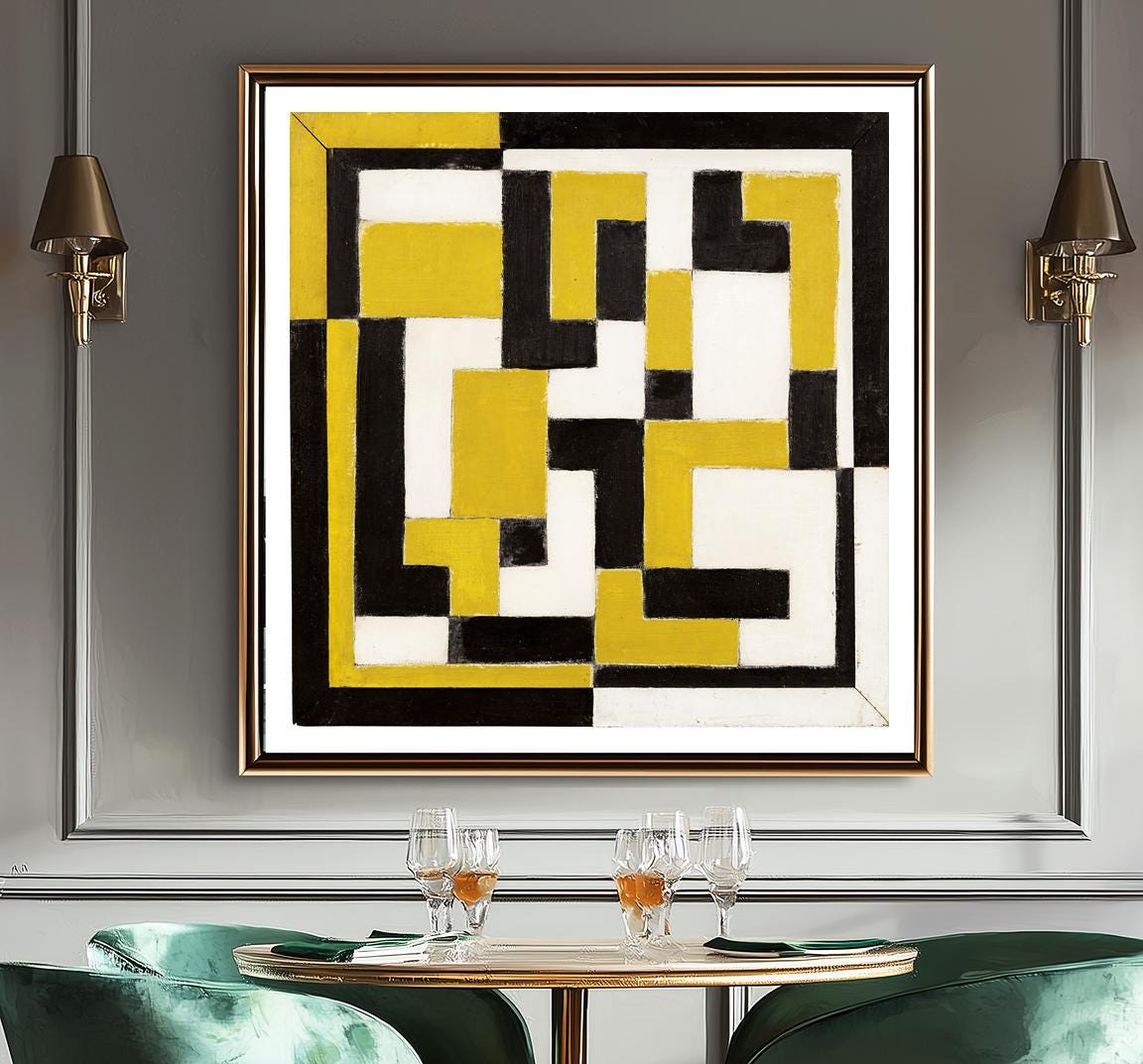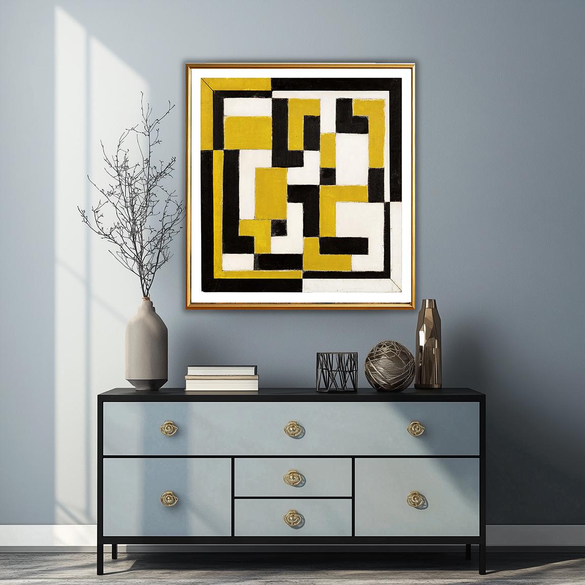 Printed on high quality paper, cotton canvas or adhesive sticker paper. A high quality reproduction of painting by Theo Van Doesburg. Professional packaging for safe shipping. Natural white border will be added to the image for mounting and framing.