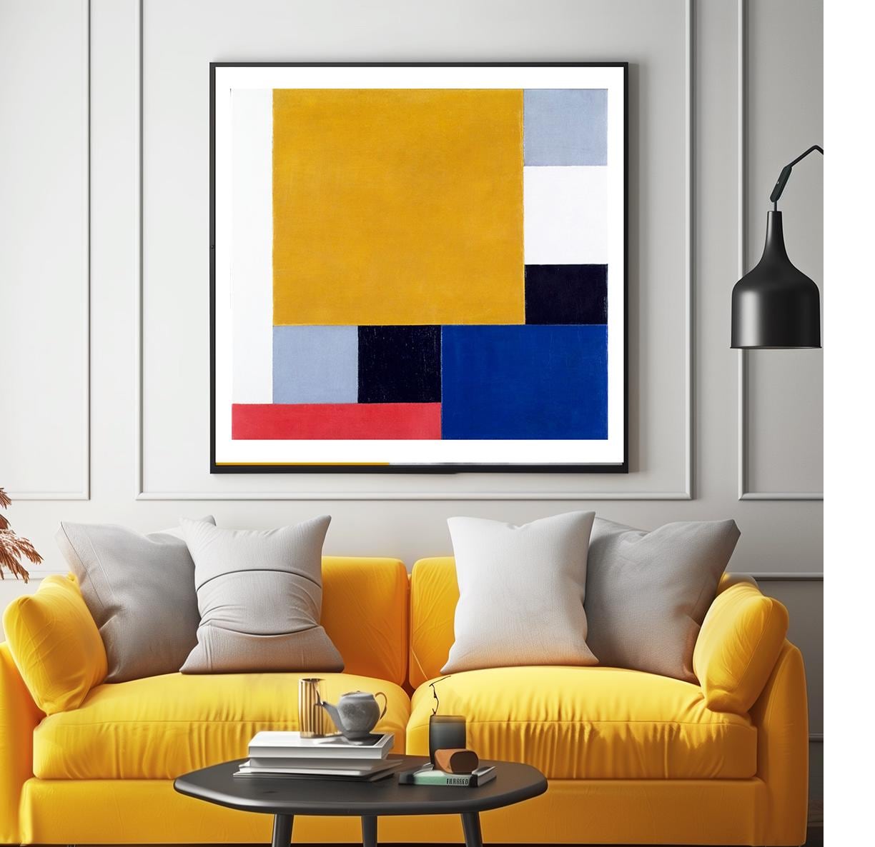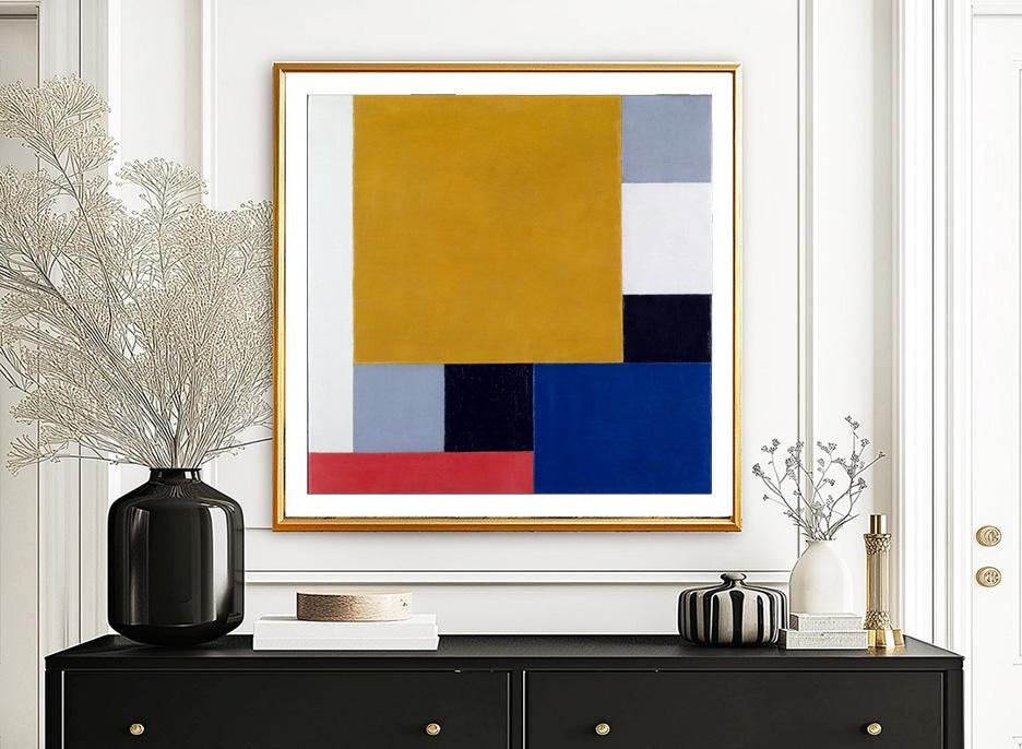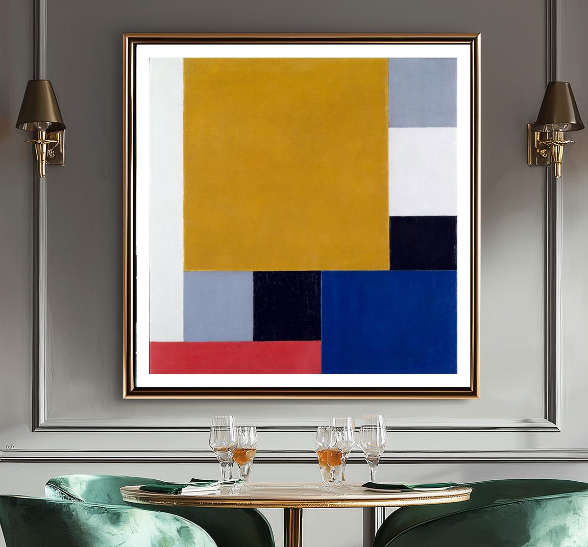 Printed on high quality paper, cotton canvas or adhesive sticker paper. A high quality reproduction of painting by Theo Van Doesburg. Professional packaging for safe shipping. Natural white border will be added to the image for mounting and framing.
