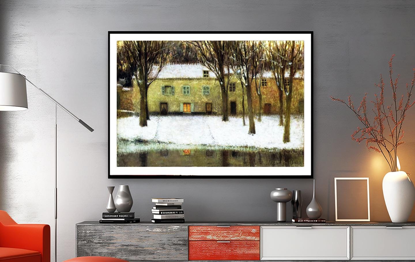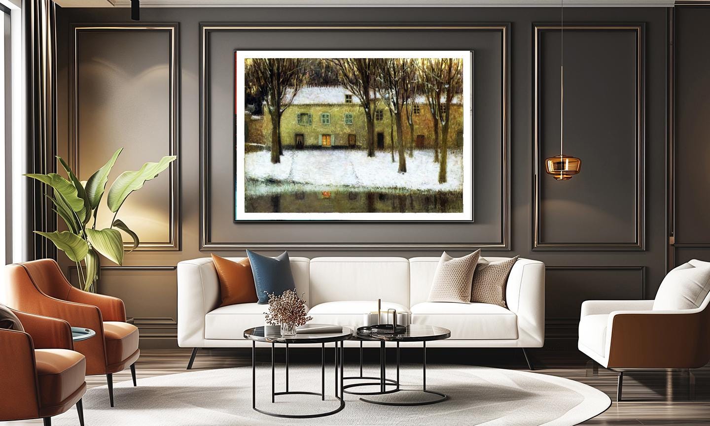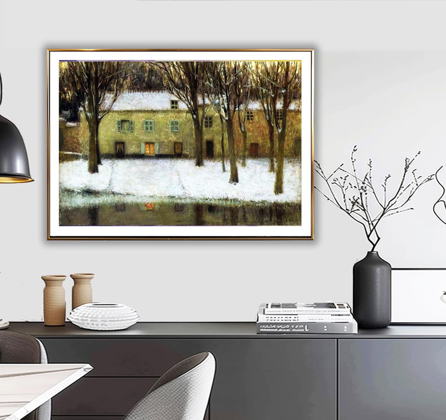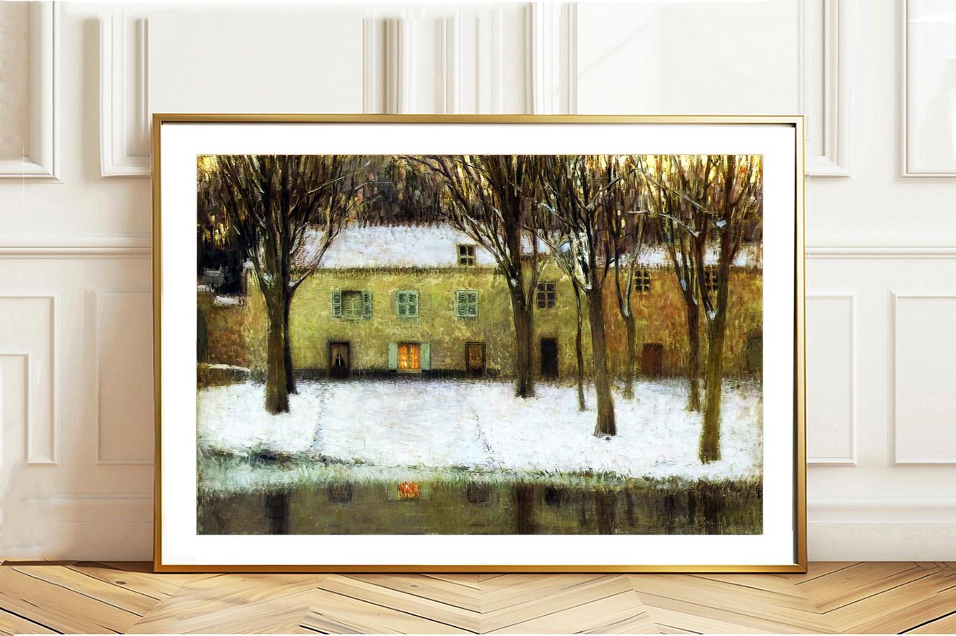 Henri Le Sidaner Print: Winter River Landscape Fine Art