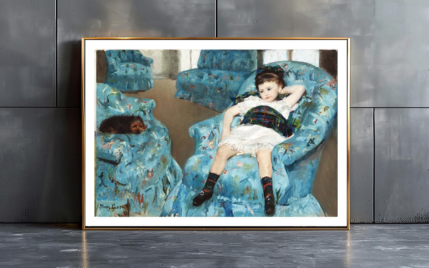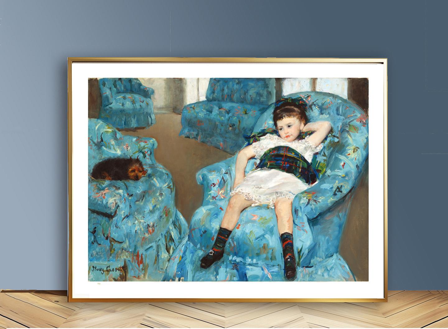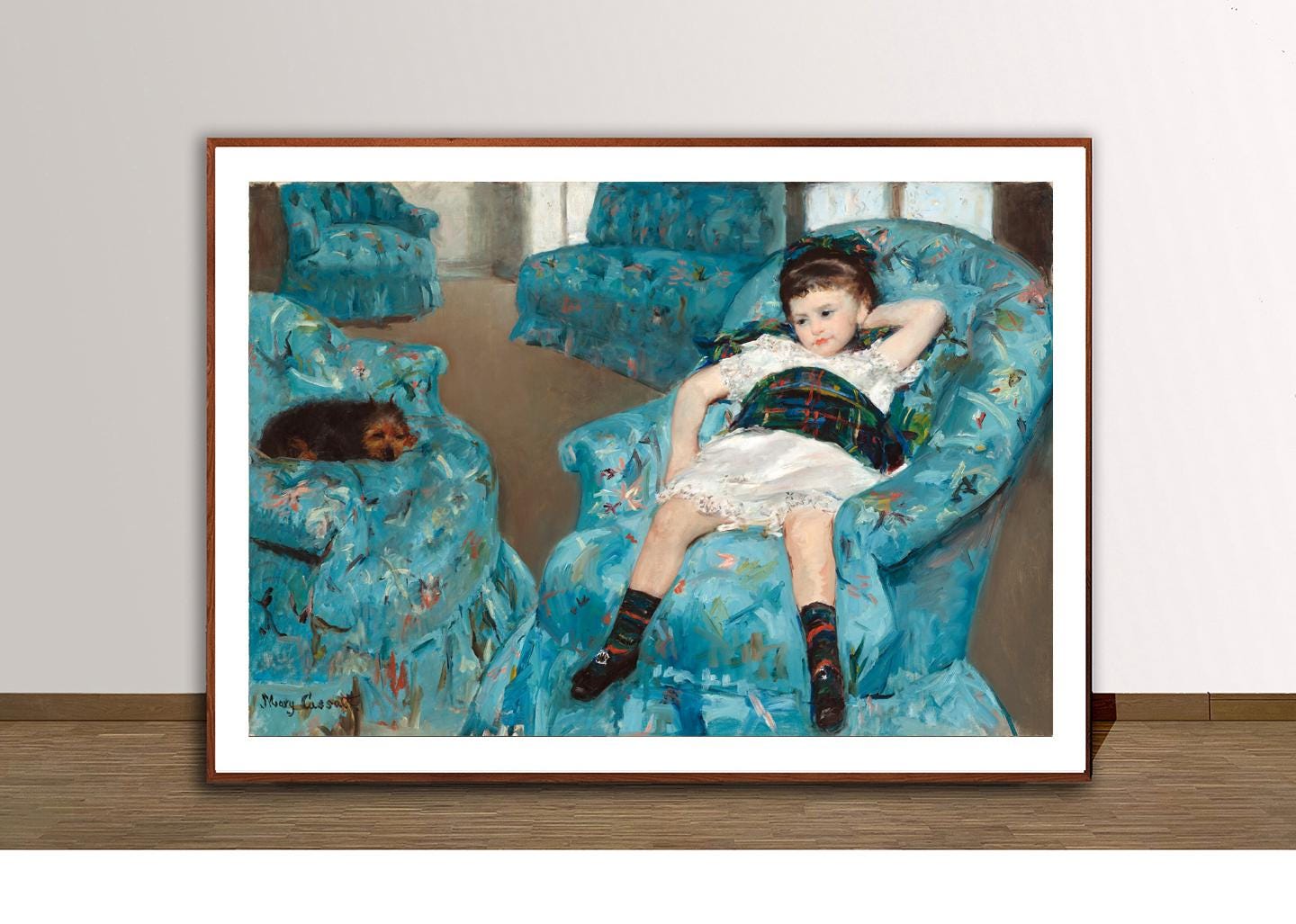 Petite Fille dans un Fauteuil Bleu by Mary Cassatt Fine Art Print - Poster Paper, Canvas Giclee Print