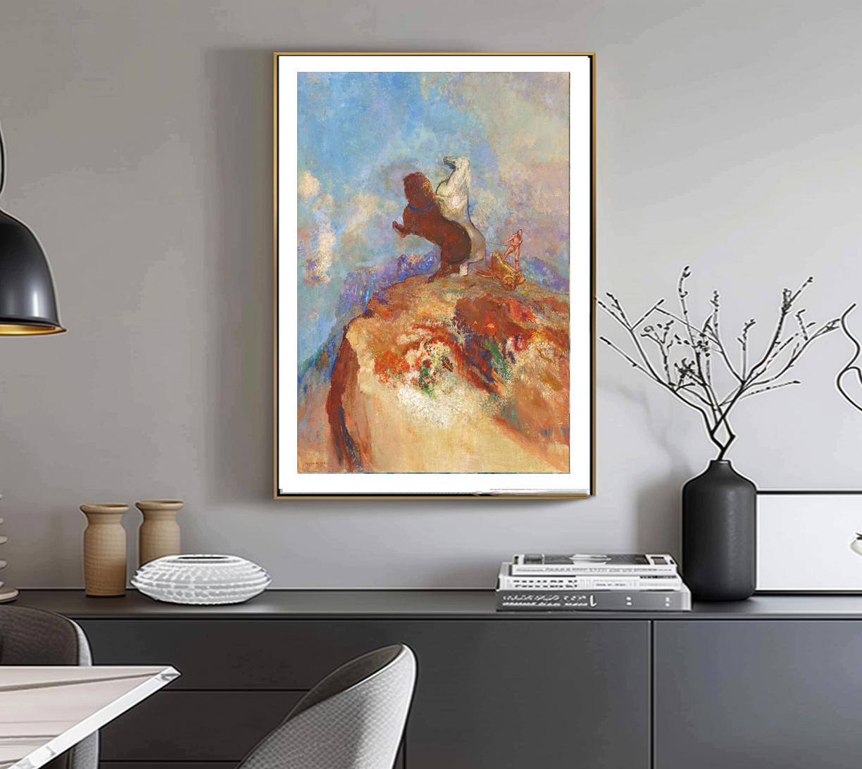 Giclee printed on high quality paper, cotton canvas or adhesive sticker paper. A high quality painting reproduction of painting by Odilon Redon. Professional packaging for safe shipping. Natural white border will be added to the image for mounting and framing.