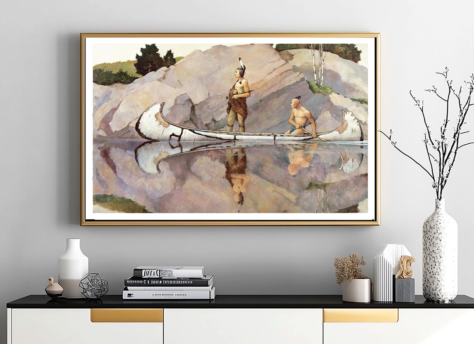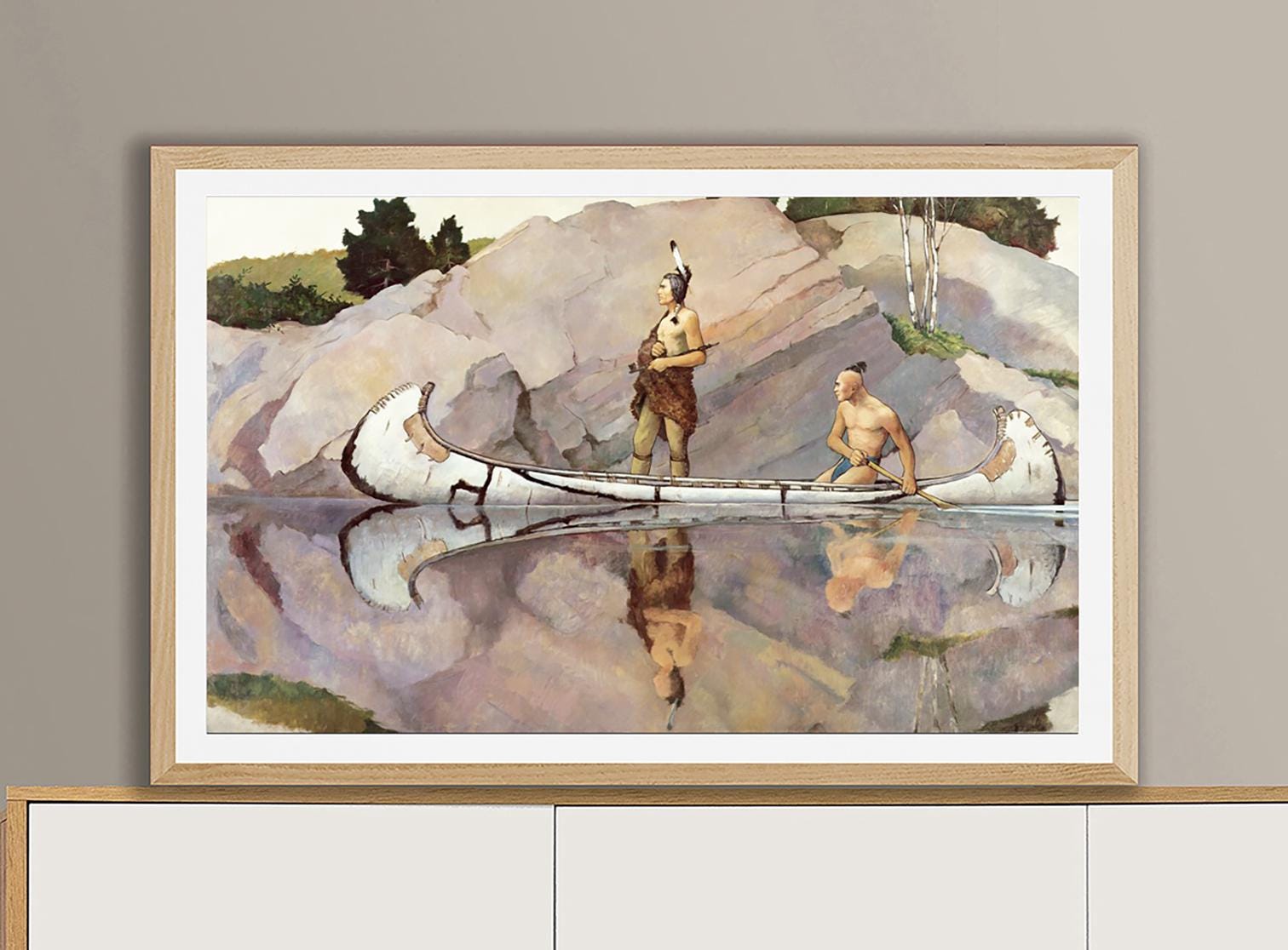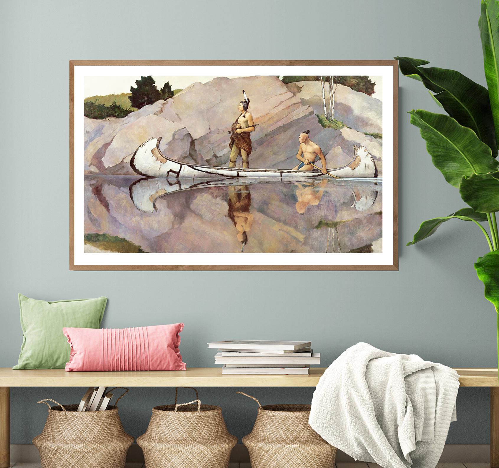 Newell Convers Wyeth Art Print: Indians in Canoe, Western Wall Decor