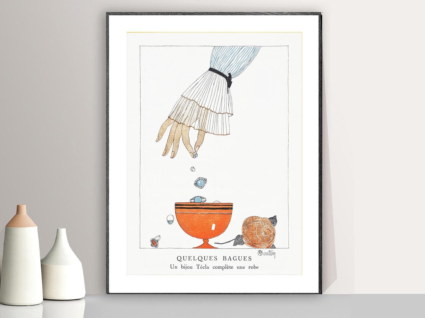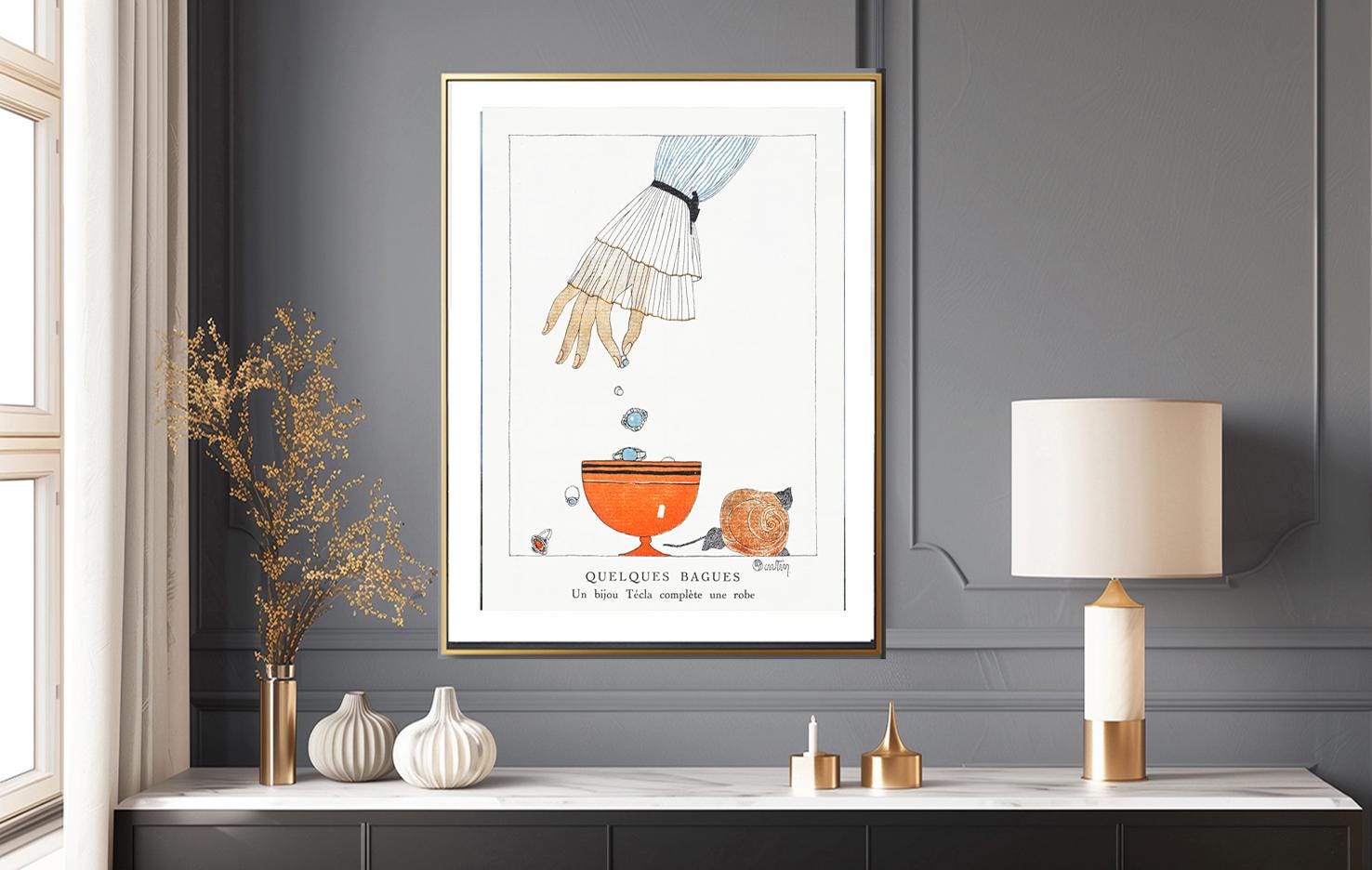 Quelques Bagues un Bijou Tecla Complete une Robe (A Few Rings, a Piece of Jewelry, Complete a Dress) by George Barbier - Poster Paper, Canvas Print