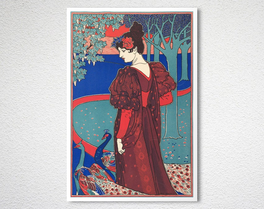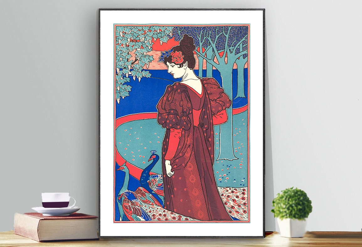 Woman with Peacocks by Louis Rhead Fine Art Print - Poster Paper, Sticker or Canvas Print / Gift Idea / Wall Decor