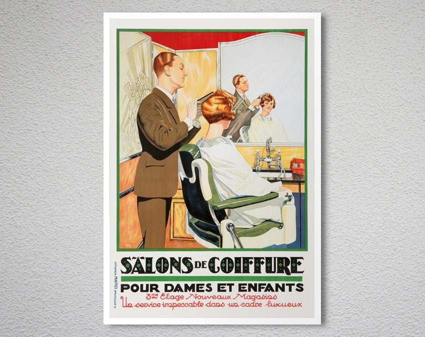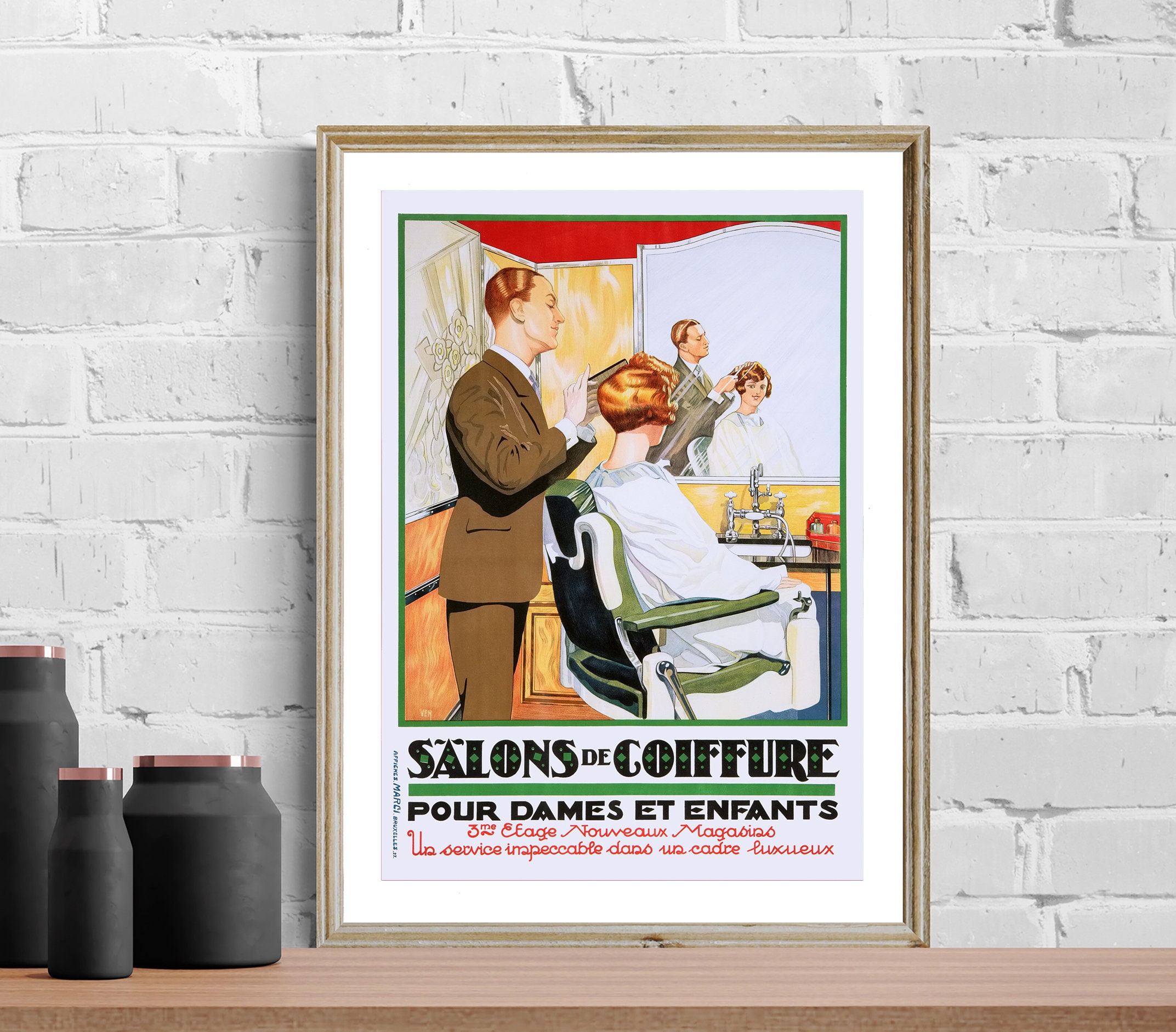 Salons de Coiffure pour Dames et Enfants Vintage Poster - Poster Paper or Canvas Print / Gift Idea / Wall Decor