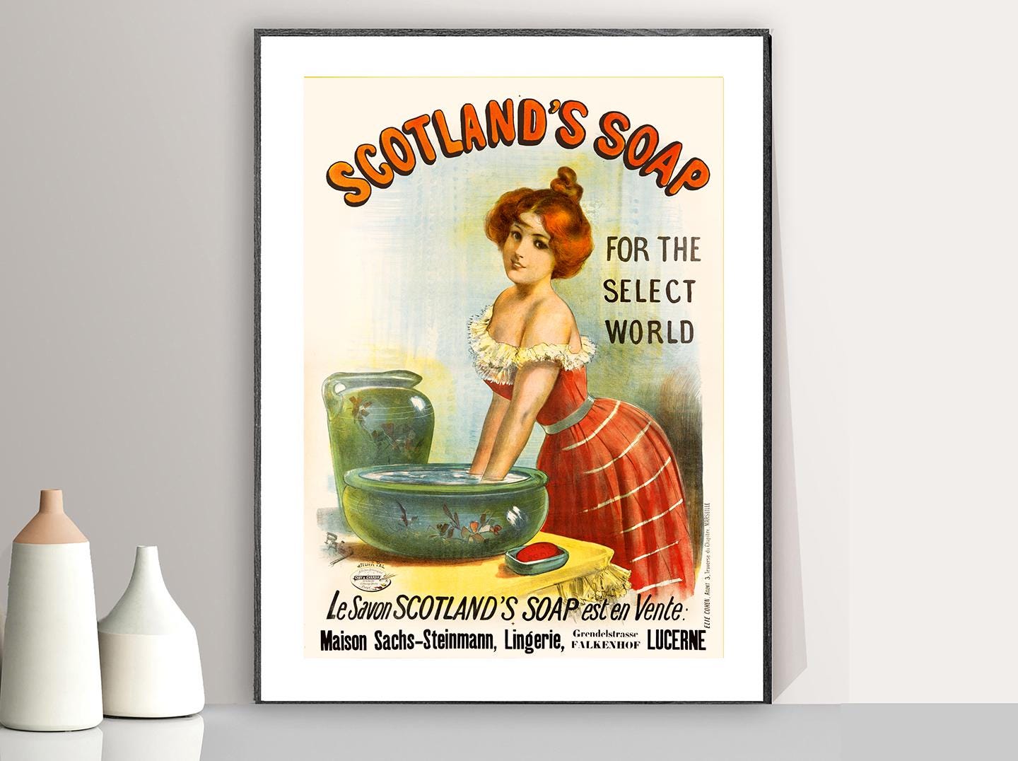 Vintage Scotland's Soap Advertisement Art Print - Reproduction of a Retro Artwork, Decorative Purposes Wall Decor