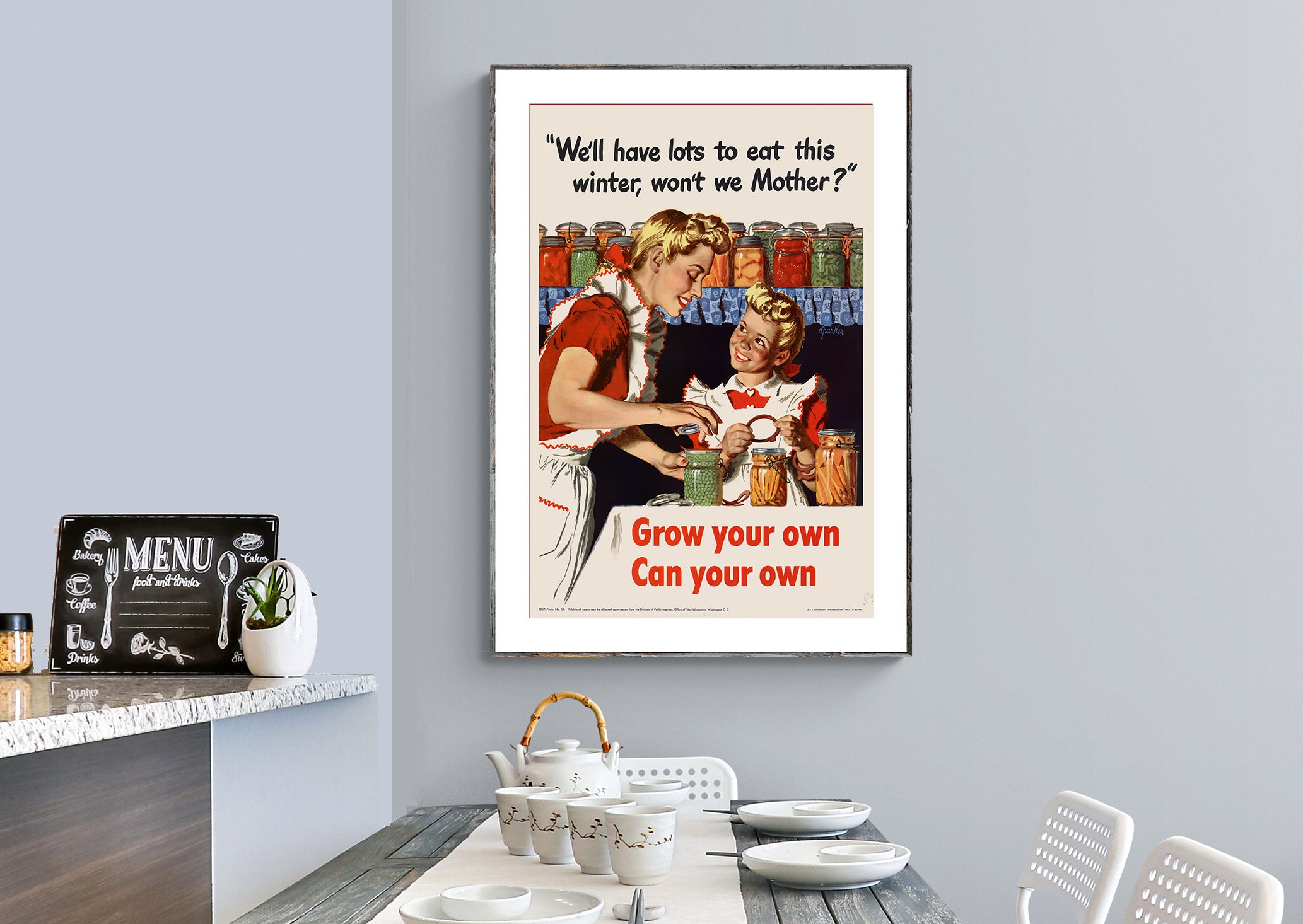 Grow Your Own, Can Your Own, Vintage Artwork, Food & Drink Poster, Retro Painting, Motivational Print, Typographic Décor, Kitchen Wall Art