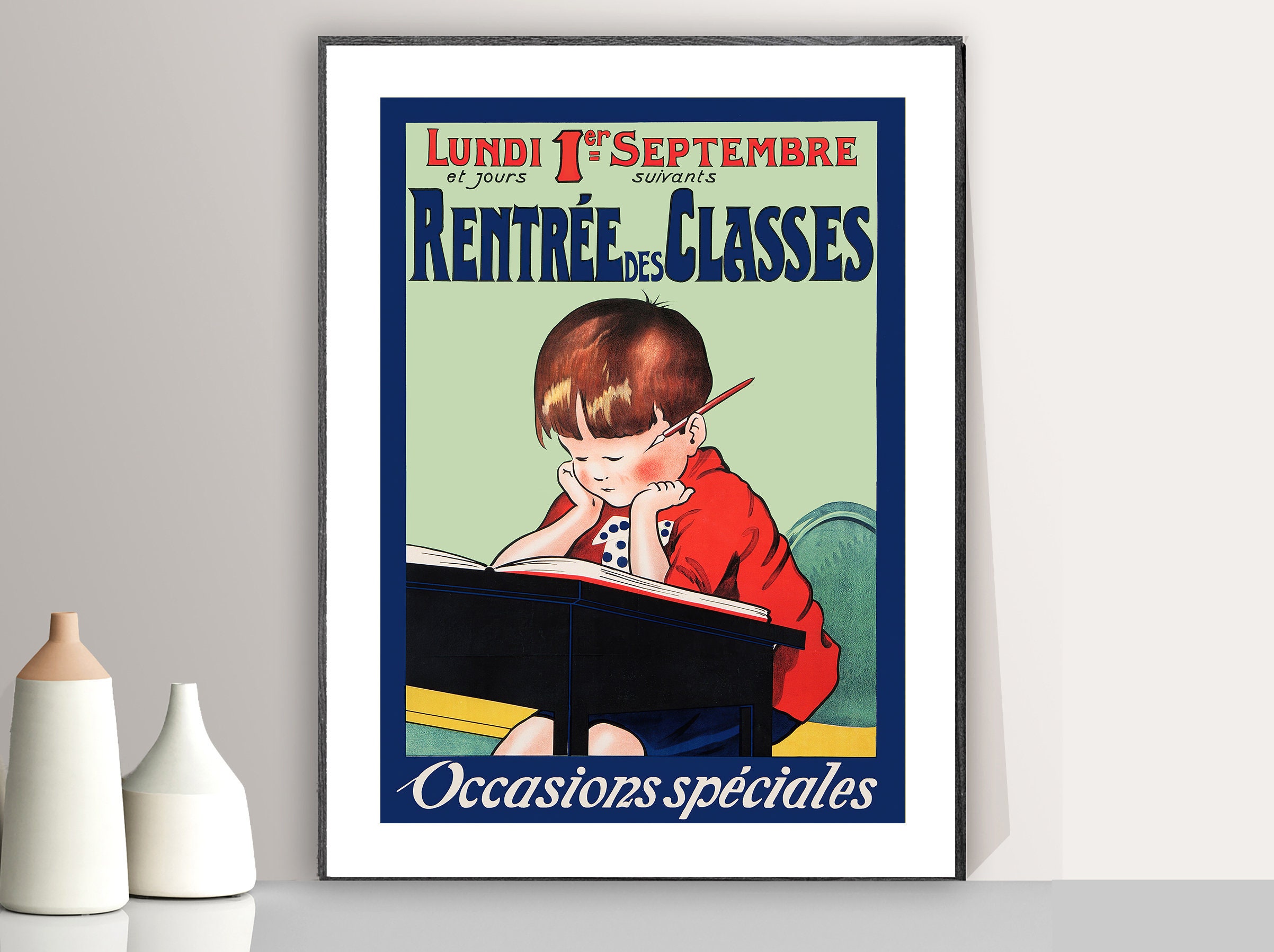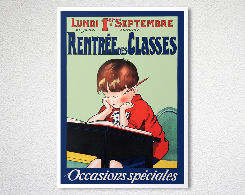 Vintage Back to School Poster: French Classroom Decor (Paper or Canvas Print)