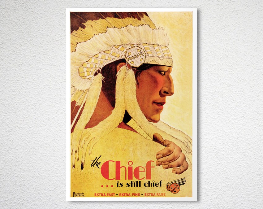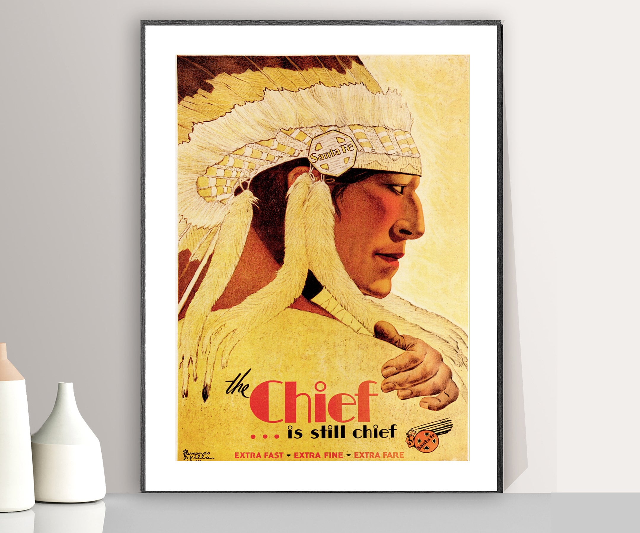 Hernando Villa 'The Chief' Retro Indian Poster: Transportation Wall Art