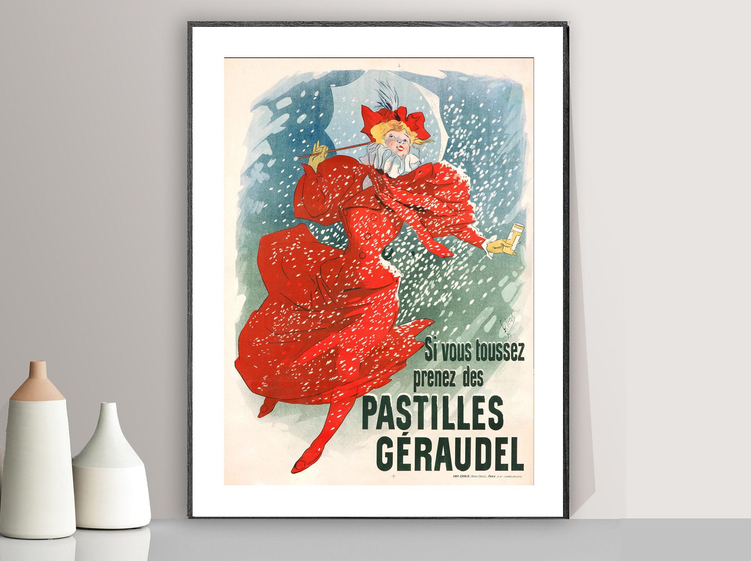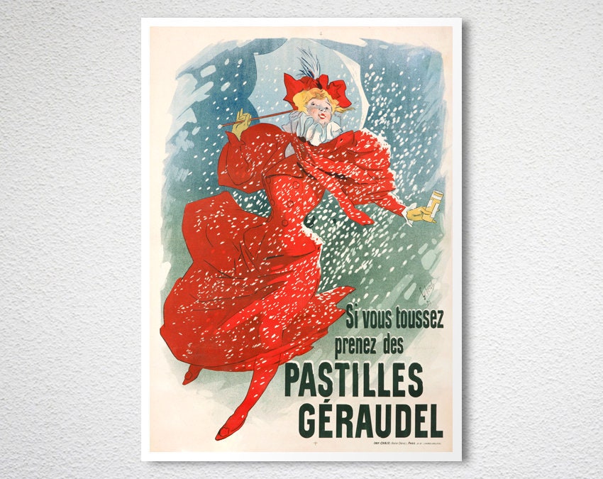 Pastilles Geraudel Vintage Poster by Jules Cheret - Poster Paper or Canvas Print / Gift Idea / Wall Decor