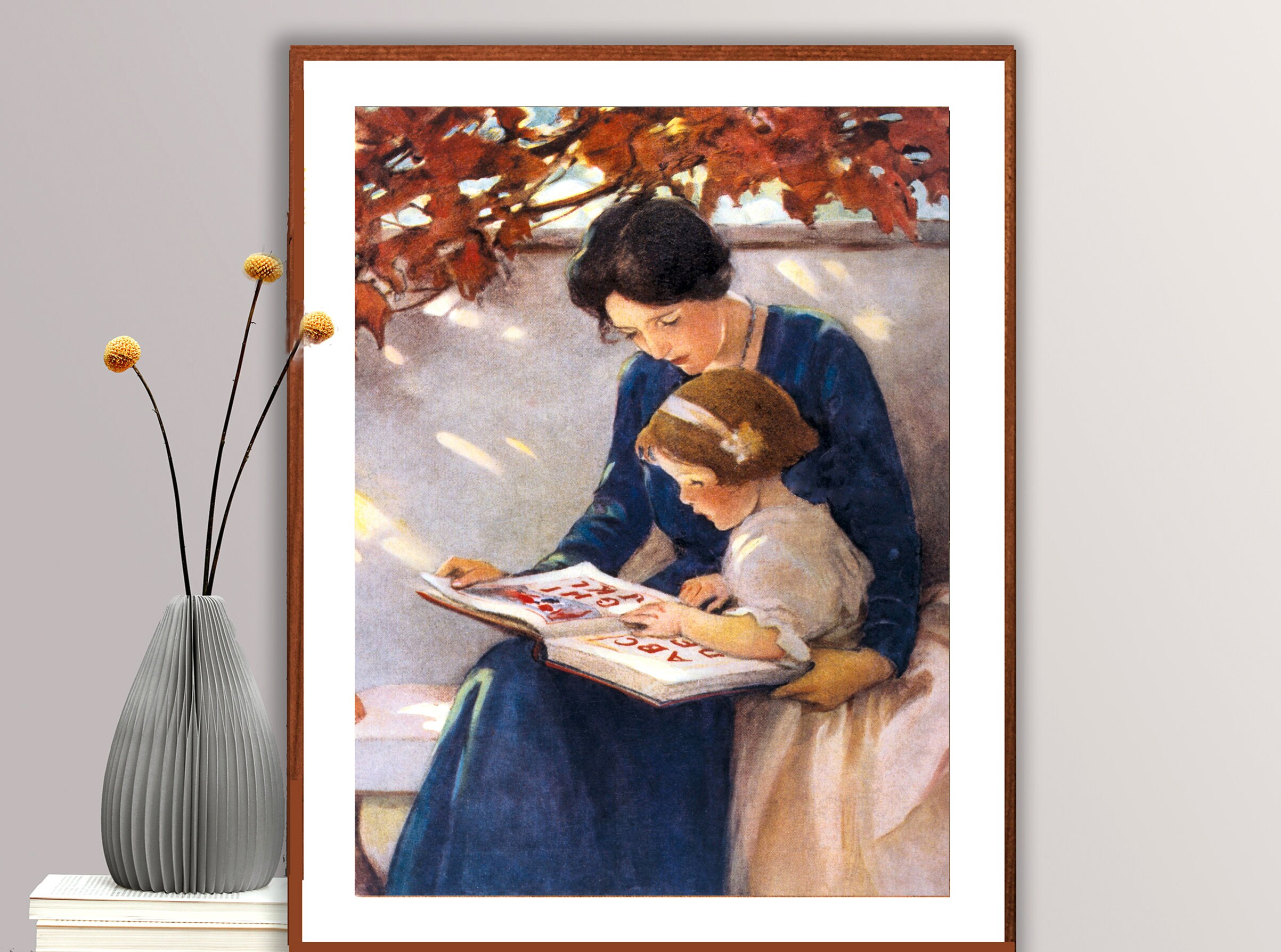 Mother Helps with ABC's by Jessie Willcox Smith Fine Art Print - Poster Paper or Canvas Print / Gift Idea / Wall Decor