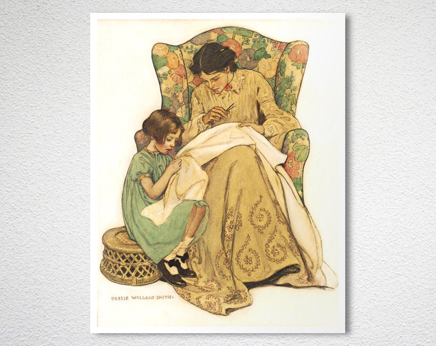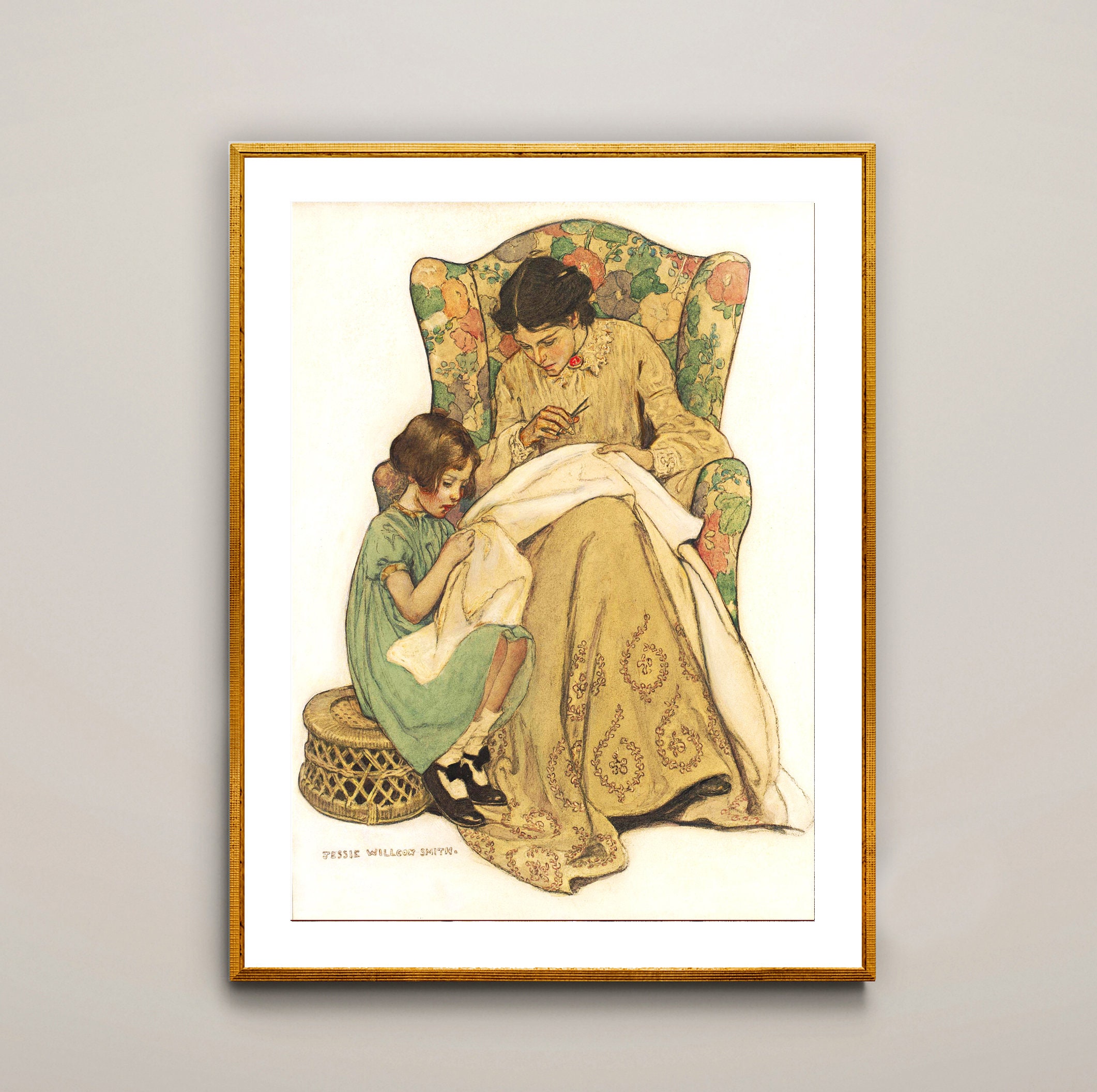 Jessie Willcox Smith Art Print: The Sewing Lesson, Vintage Wall Art