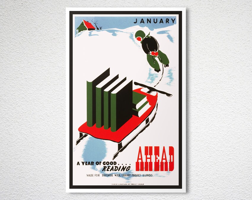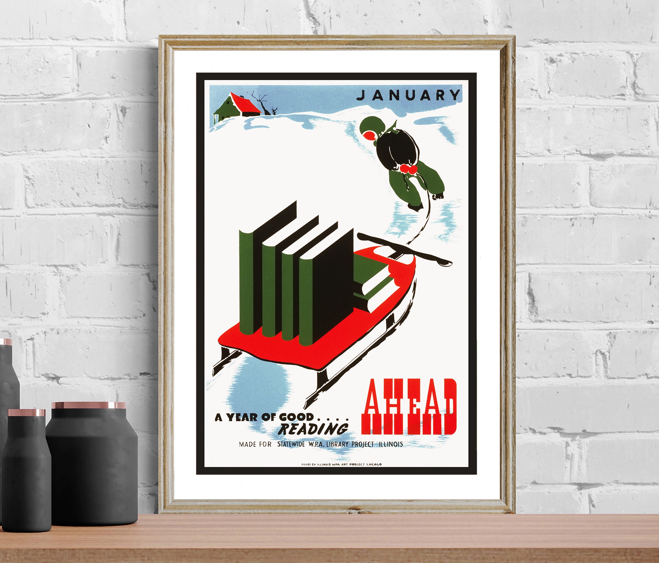 A Year of Good Reading Ahead Vintage Motivational Poster - Poster Paper or Canvas Print