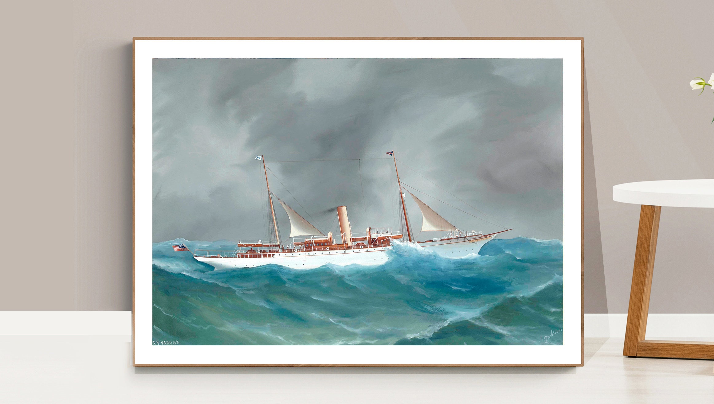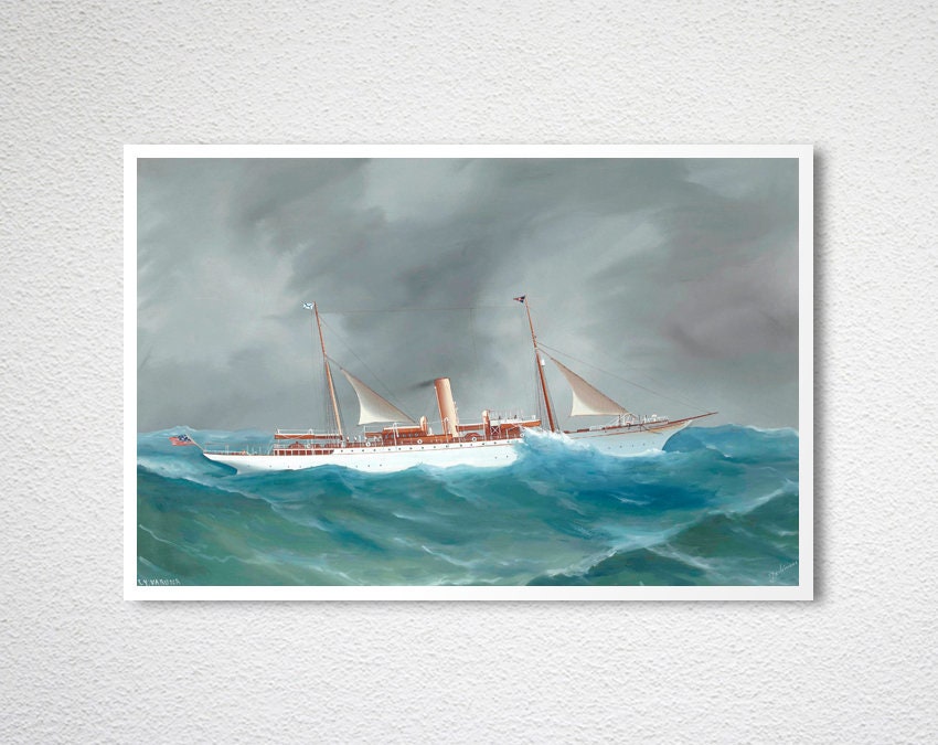 The New York Yacht Club's Steam Yacht Varuna in an Offshore Swell by Antonio de Simone - Poster Paper or Canvas Print / Gift Idea