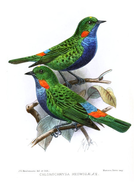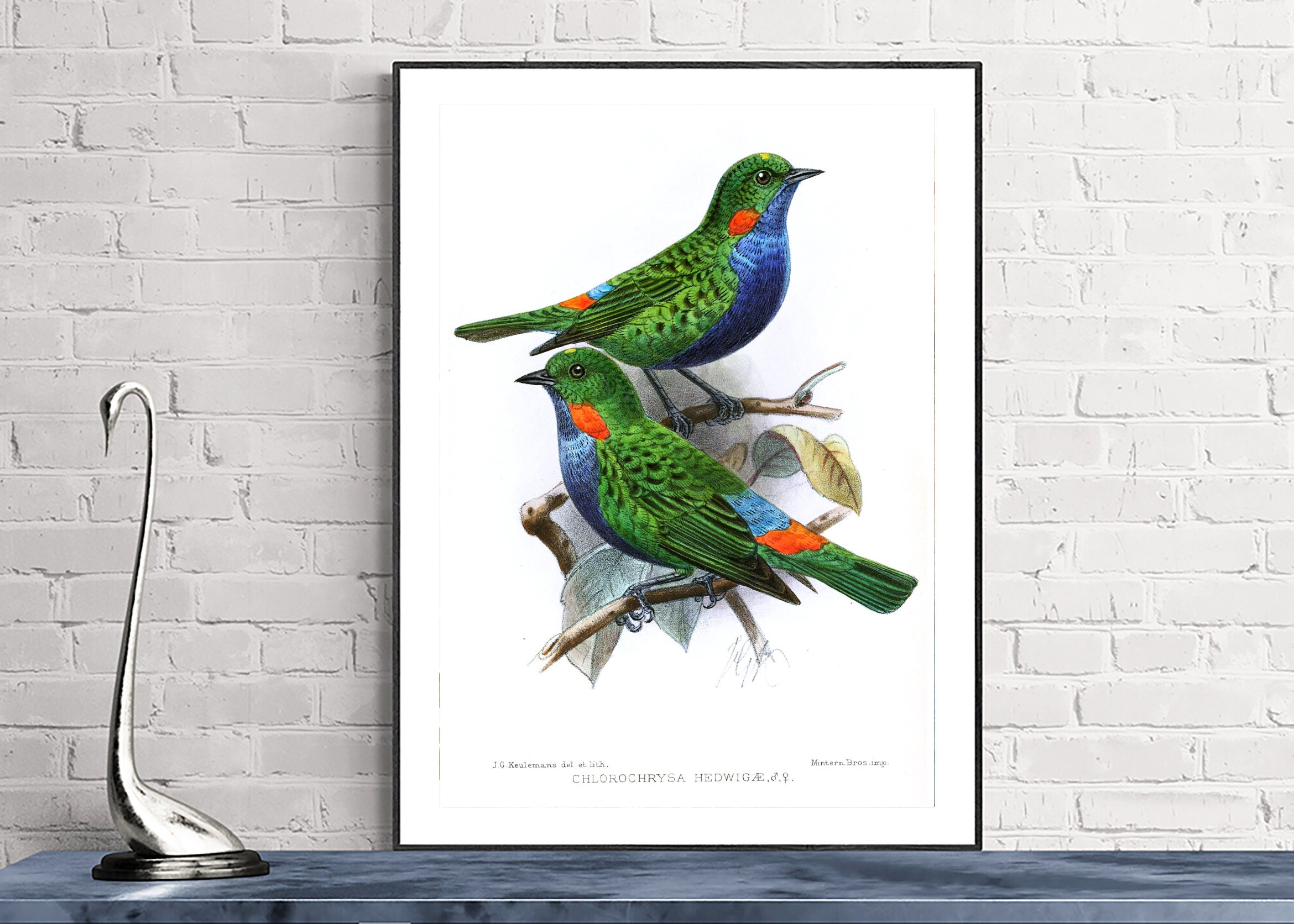 Chlorochrysa Calliparaea Print: Vintage Bird Poster, Nature Wall Art