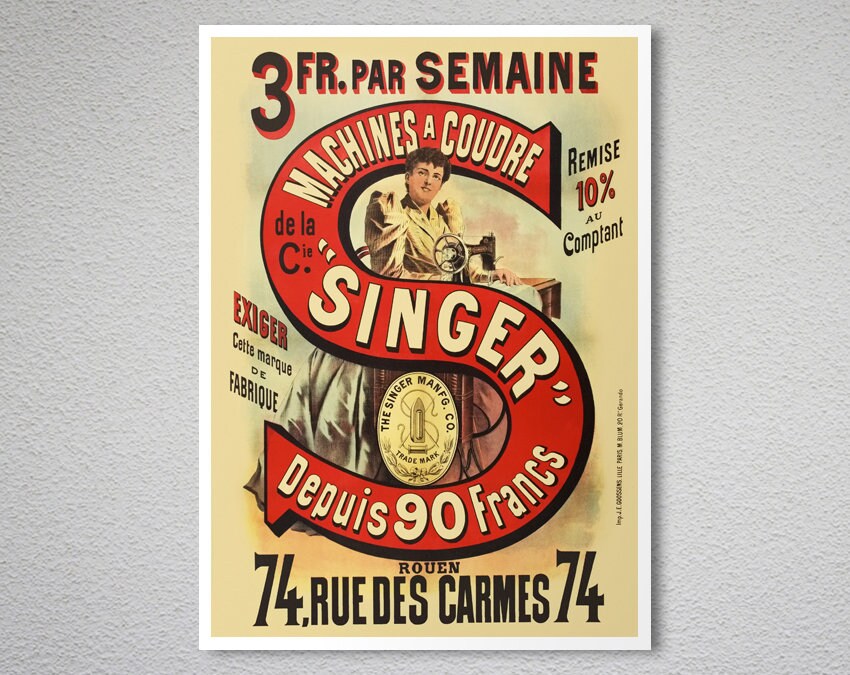 Singer, 3 Fr. par Semaine Vintage Poster - Poster Paper or Canvas Print / Gift Idea / Wall Decor