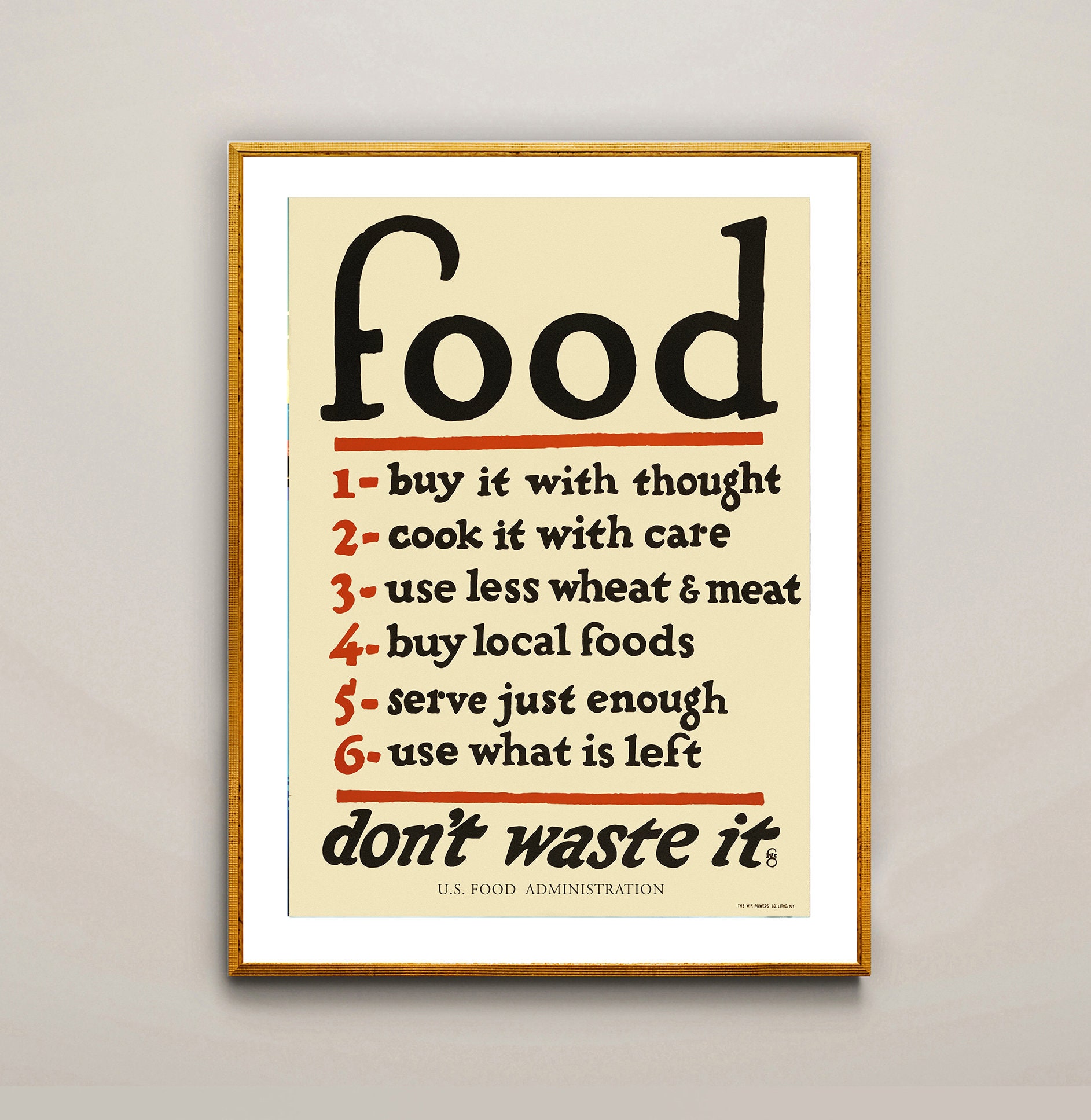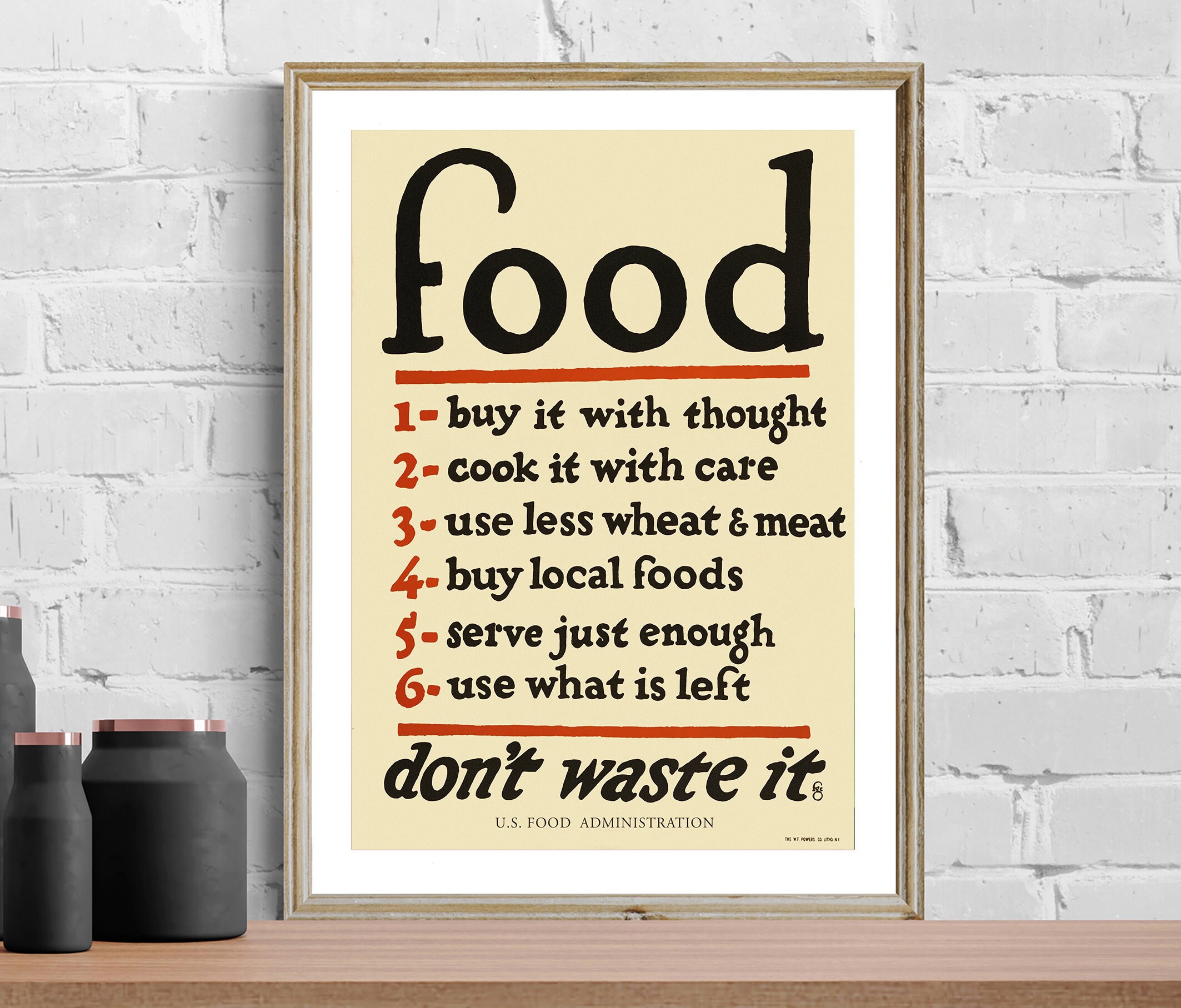Food Don't Waste It Vintage Poster: Typographic Kitchen Art
