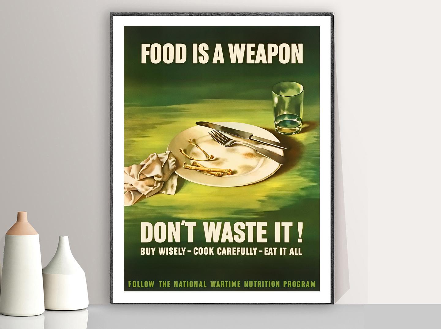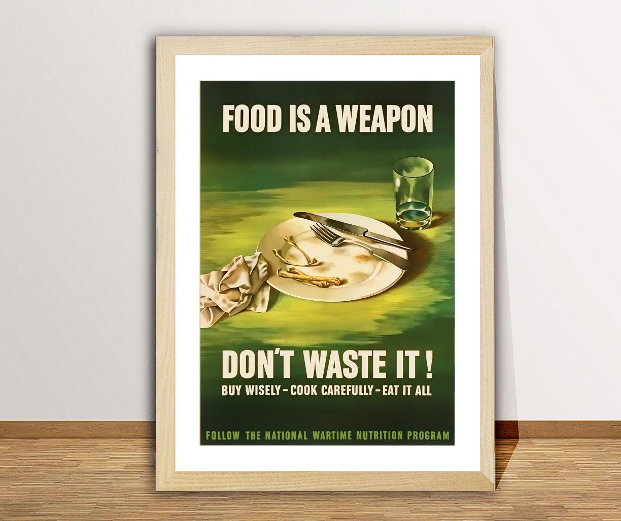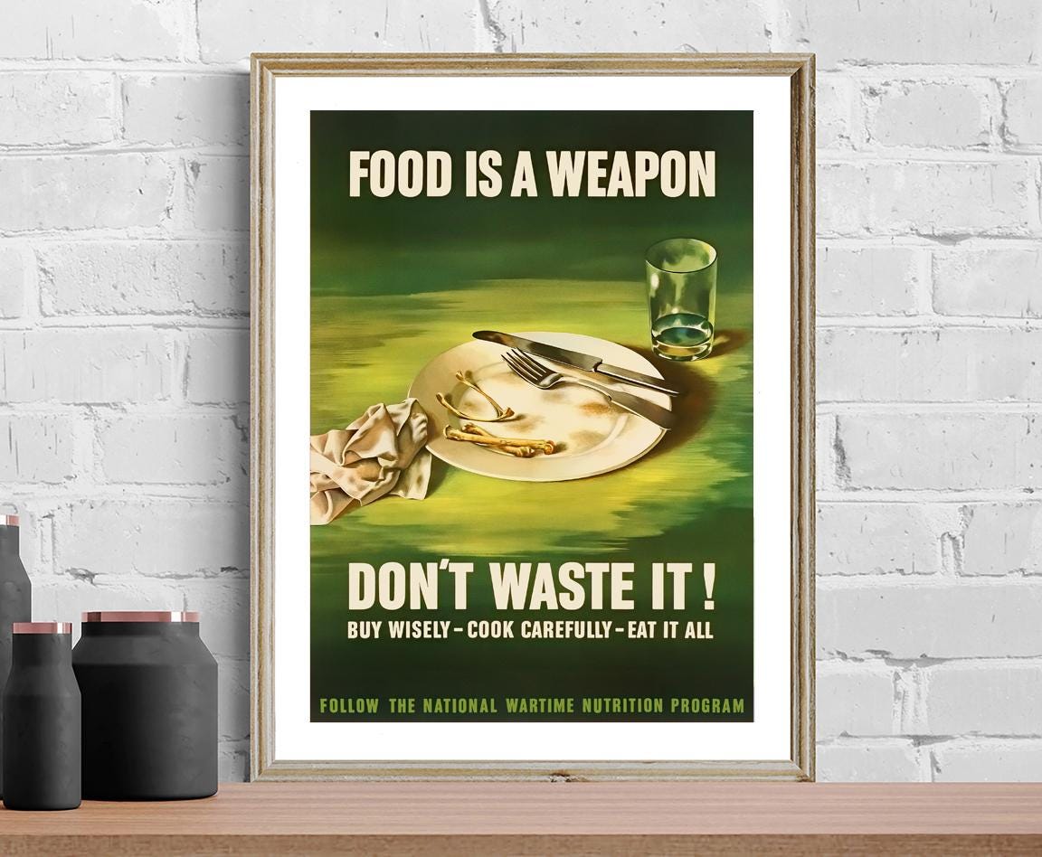 Food is a Weapon, Don't Waste It, Vintage Food&Drink Poster - Poster Paper or Canvas Print