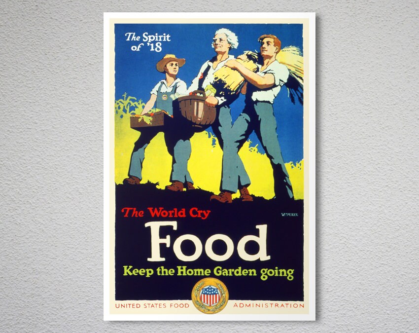 The World Cry Food, Keep the Home Garden Going Vintage Food&Drink Poster - Poster Paper or Canvas Print