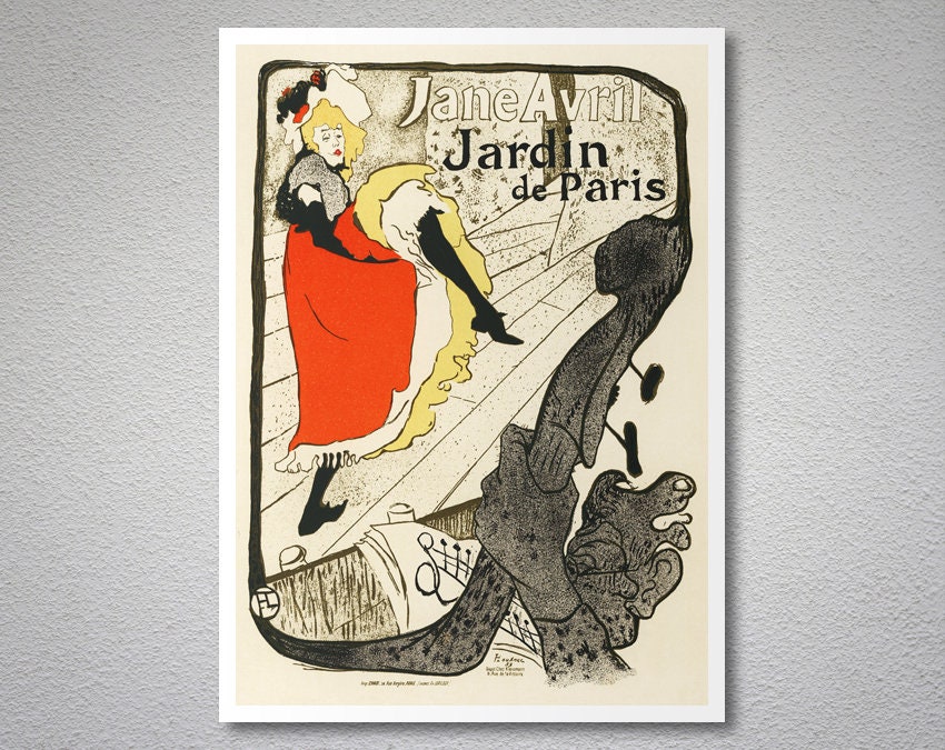 Jane Avril, Jardin de Paris by Henri de Toulouse Lautrec Vintage Entertainment Poster- Poster Paper or Canvas Print