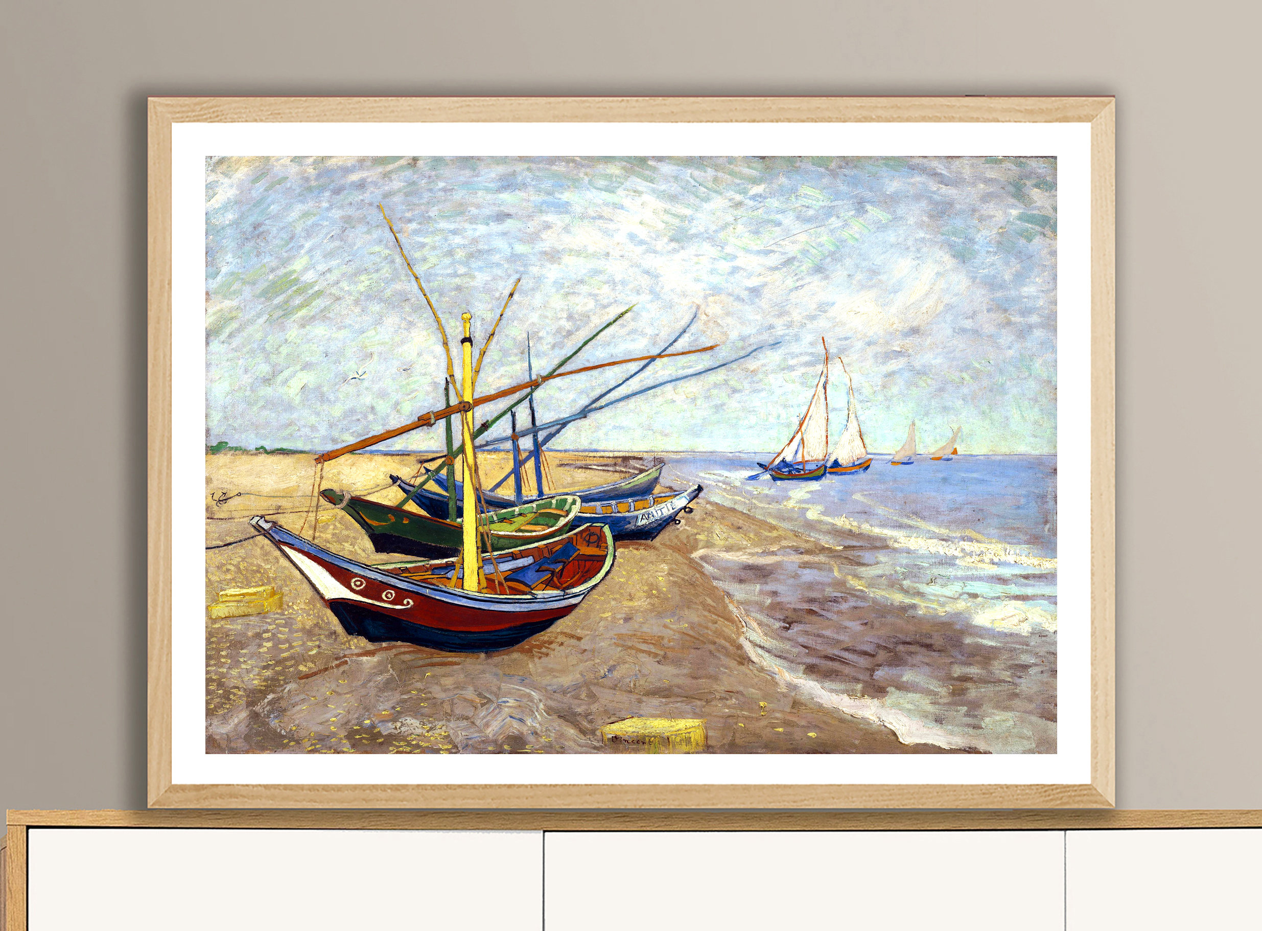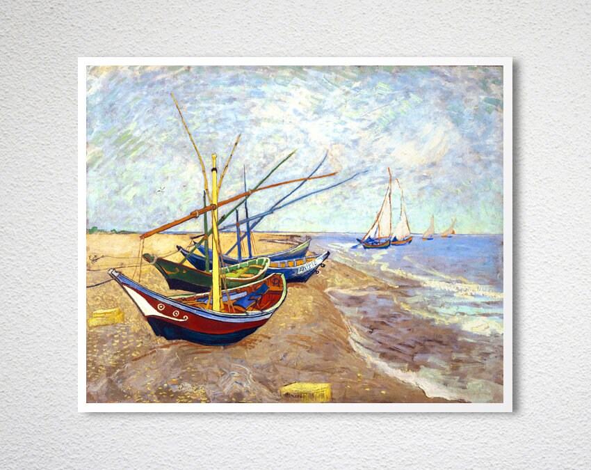 Fishing Boats on the Beach at Saints-Maries by Vincent Van Gogh Fine Art Print - Poster Paper or Canvas Print